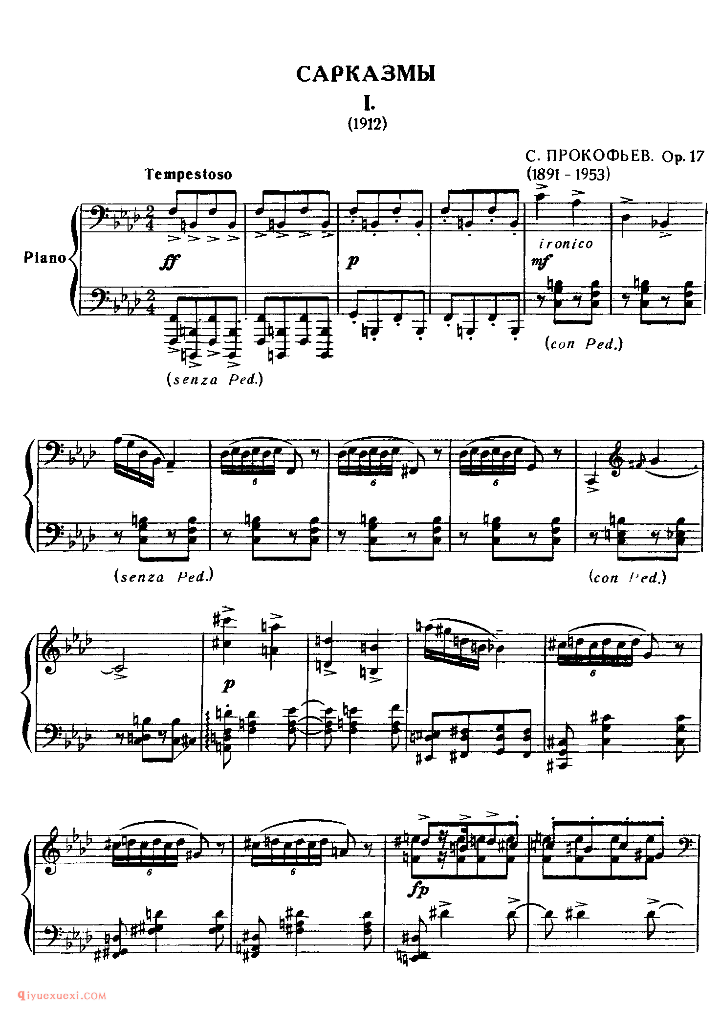 普罗科菲耶夫 5首讽刺曲 5 Sarcasms Op17_普罗科菲耶夫钢琴谱高清电子版乐谱歌词图片是器乐学习网于2021年11月29日 17:09:28更新分享的钢琴曲谱;资源收录于钢琴曲谱栏目中;器乐学习网免费分享普罗科菲耶夫 5首讽刺曲 5 Sarcasms Op17_普罗科菲耶夫钢琴谱简谱与五线谱歌谱图片,欢迎在线免费下载;器乐学习网无需注册会员,直接免费下载各类乐器学习资源及乐谱。