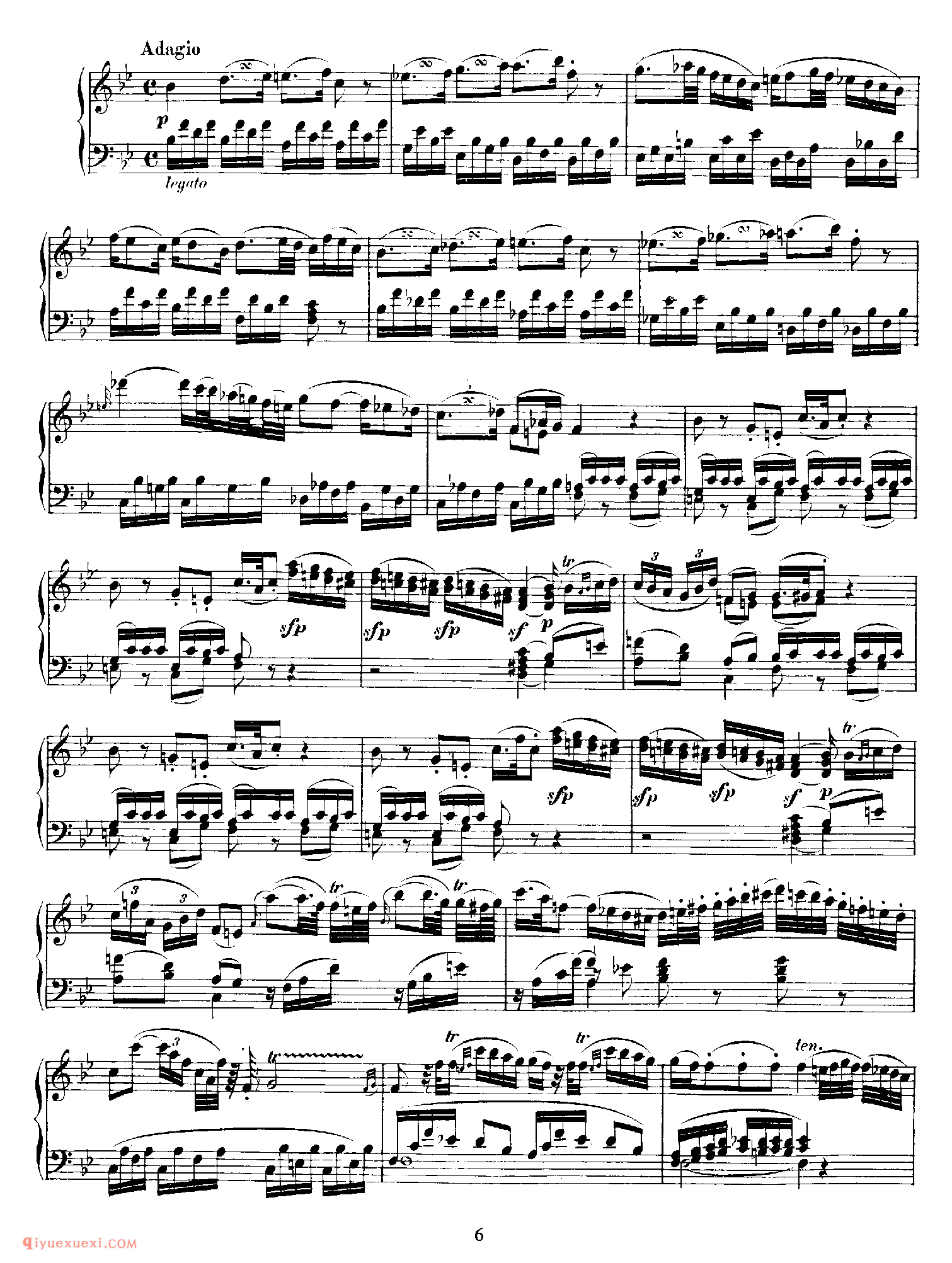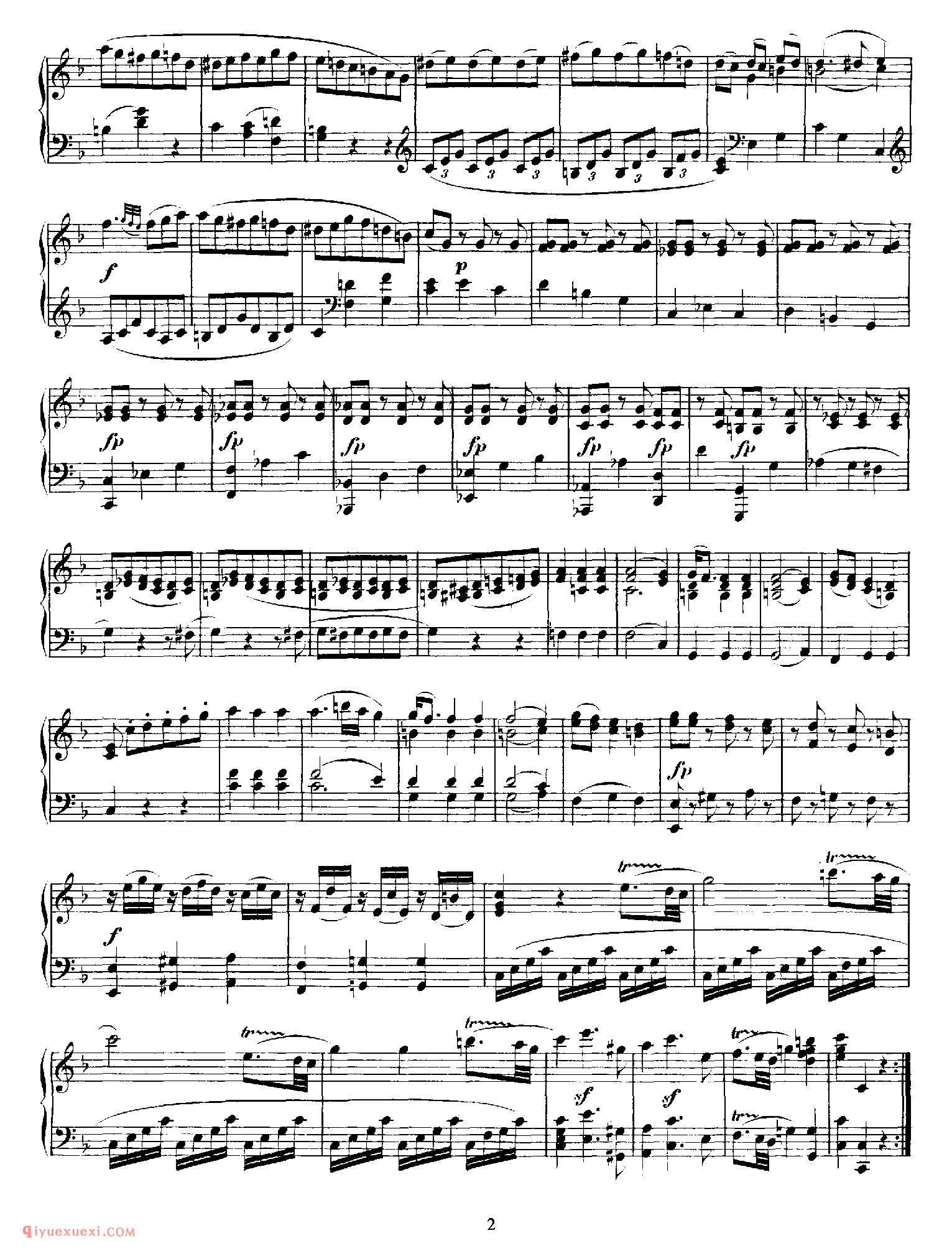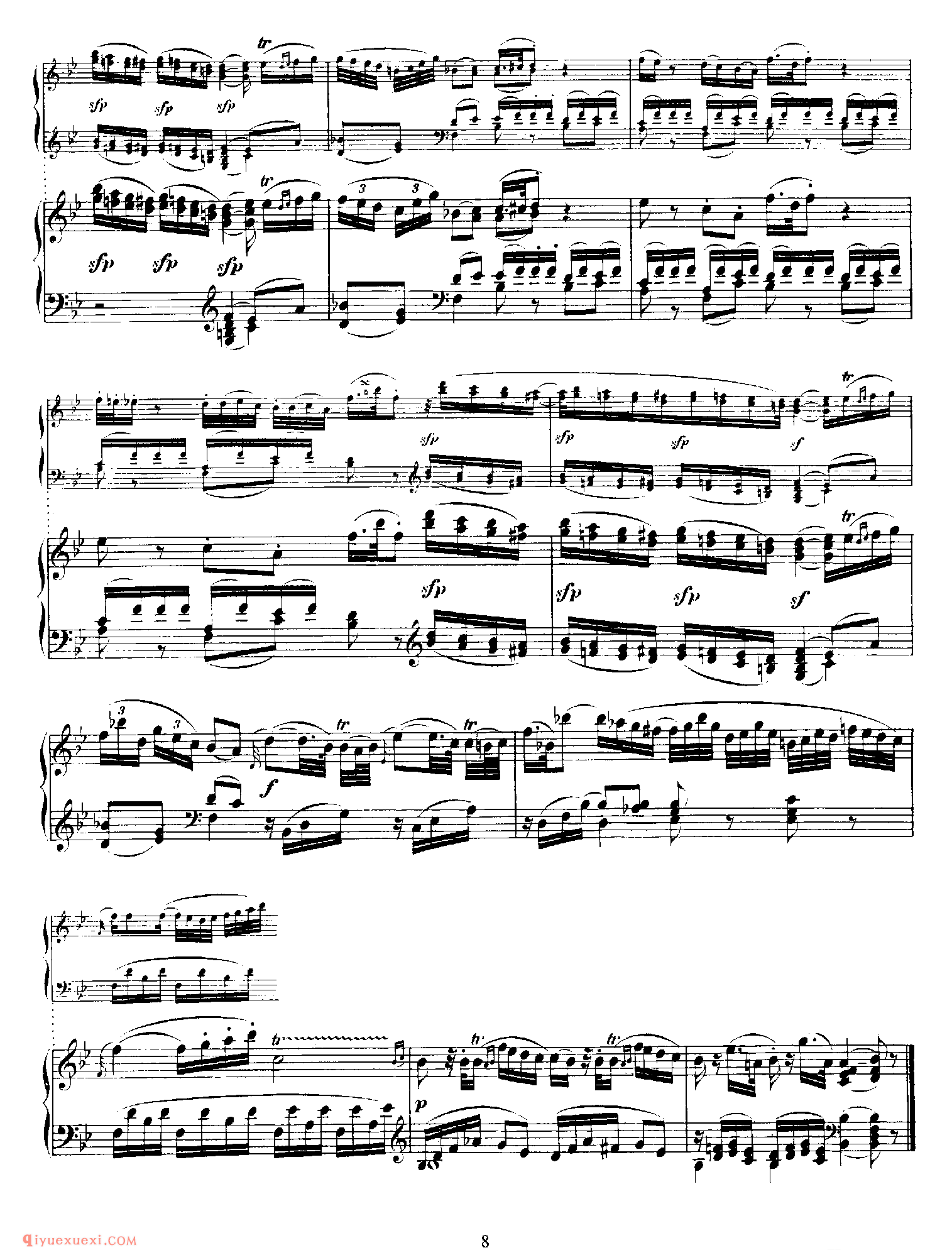 2.慢板,降B大调,奏鸣曲式,省略了发展部。第一主题从后半段的降B小调转为F小调,没有经过句,直接由F大调的第二主题承接,经过发展部直接进入再现部。