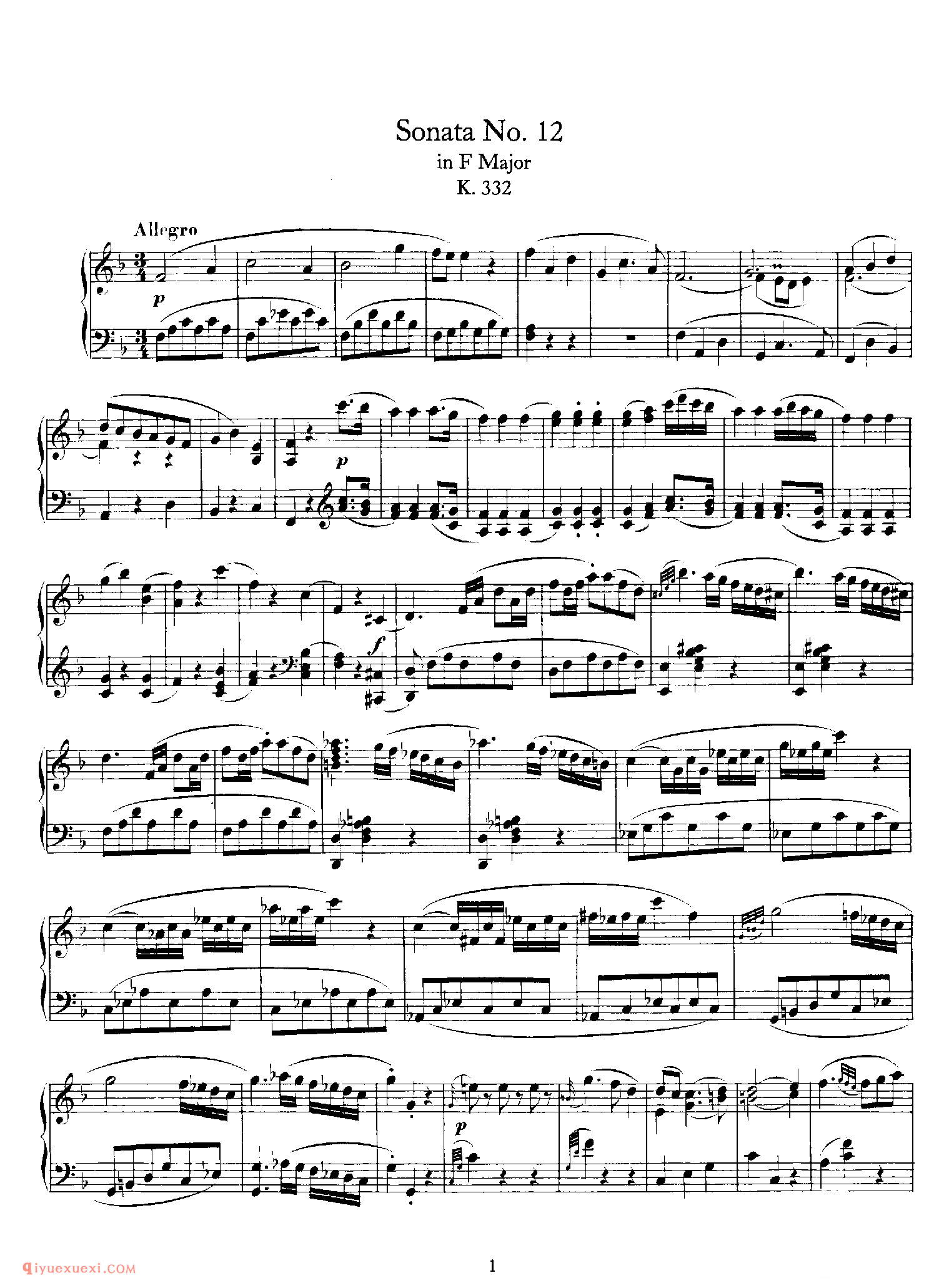 这首《第十二号钢琴奏鸣曲》,F大调,K332/300K,作于 1781-1783年。