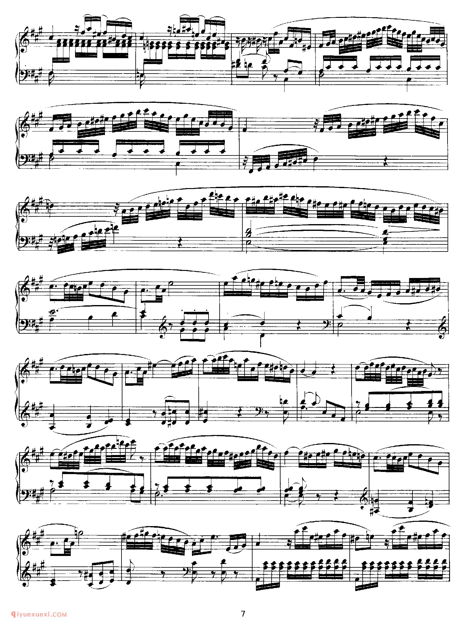 2.慢板,A大调。主题反复后,以升F小调奏插入句,主题经32分音符快速音群,以升F小调作反复。再经32分音符经过句,以主调再现主要主题后,以尾奏结束。