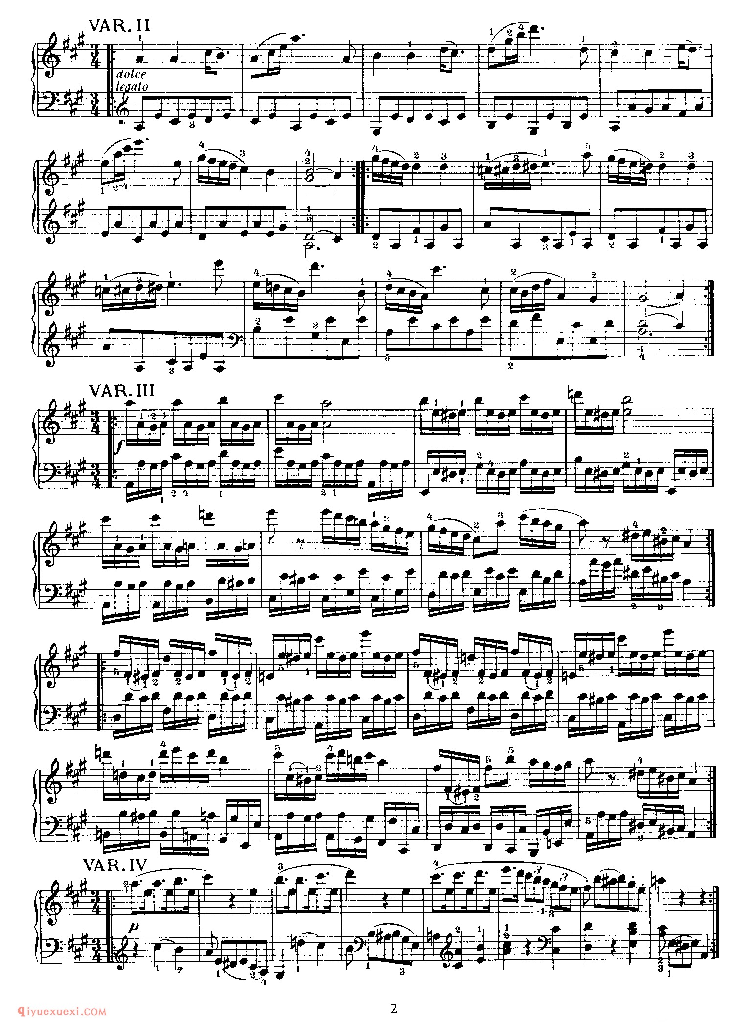 2.作于1773年夏在维也纳旅行时的G大调6首变奏曲,选自萨里埃利(Salieri)《威尼斯的集市》中的《我亲爱的阿童尼》(Mio Caro Adone)的K180/173C。