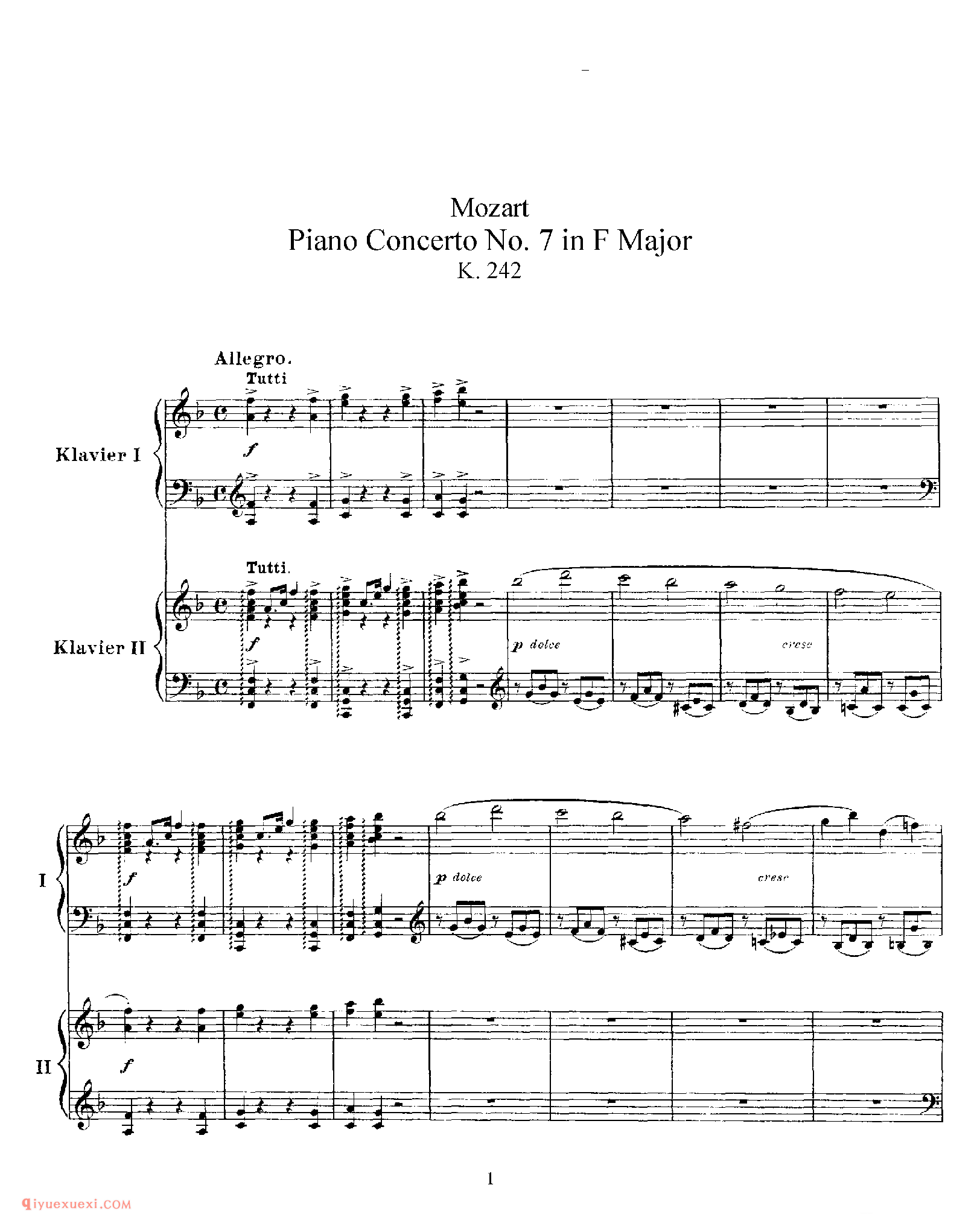 莫扎特F大调第7钢琴协奏曲 K.242_钢琴与乐队作品_莫扎特钢琴谱高清电子版乐谱歌词图片是器乐学习网于2021年11月30日 23:22:10更新分享的钢琴曲谱;资源收录于钢琴曲谱栏目中;器乐学习网免费分享莫扎特F大调第7钢琴协奏曲 K.242_钢琴与乐队作品_莫扎特钢琴谱简谱与五线谱歌谱图片,欢迎在线免费下载;器乐学习网无需注册会员,直接免费下载各类乐器学习资源及乐谱。