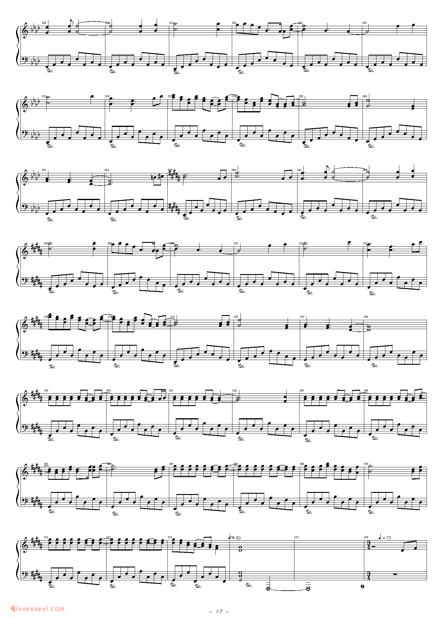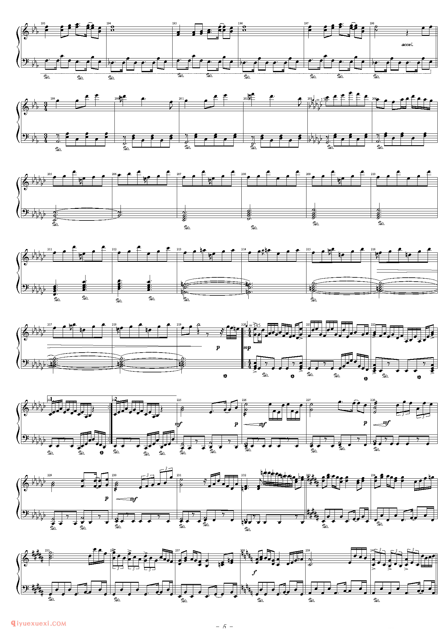 技巧: 1.这首作品和前面第八条的训练内容是一样的,都是音阶型的跑动练习,所不同的是这条练习曲以左手训练为主,左手需要注意的技巧要点和右手一样,仍然是换指动作的准确性。(具...
