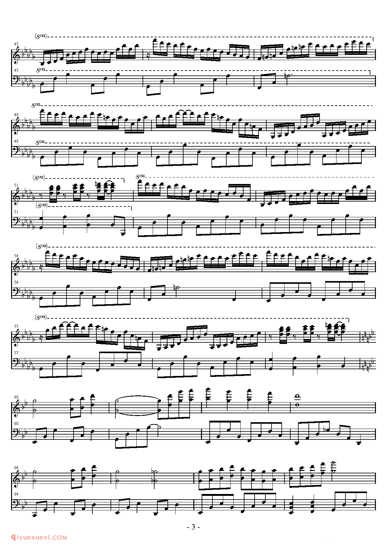技巧: 1.这首作品和前面第八条的训练内容是一样的,都是音阶型的跑动练习,所不同的是这条练习曲以左手训练为主,左手需要注意的技巧要点和右手一样,仍然是换指动作的准确性。(具...