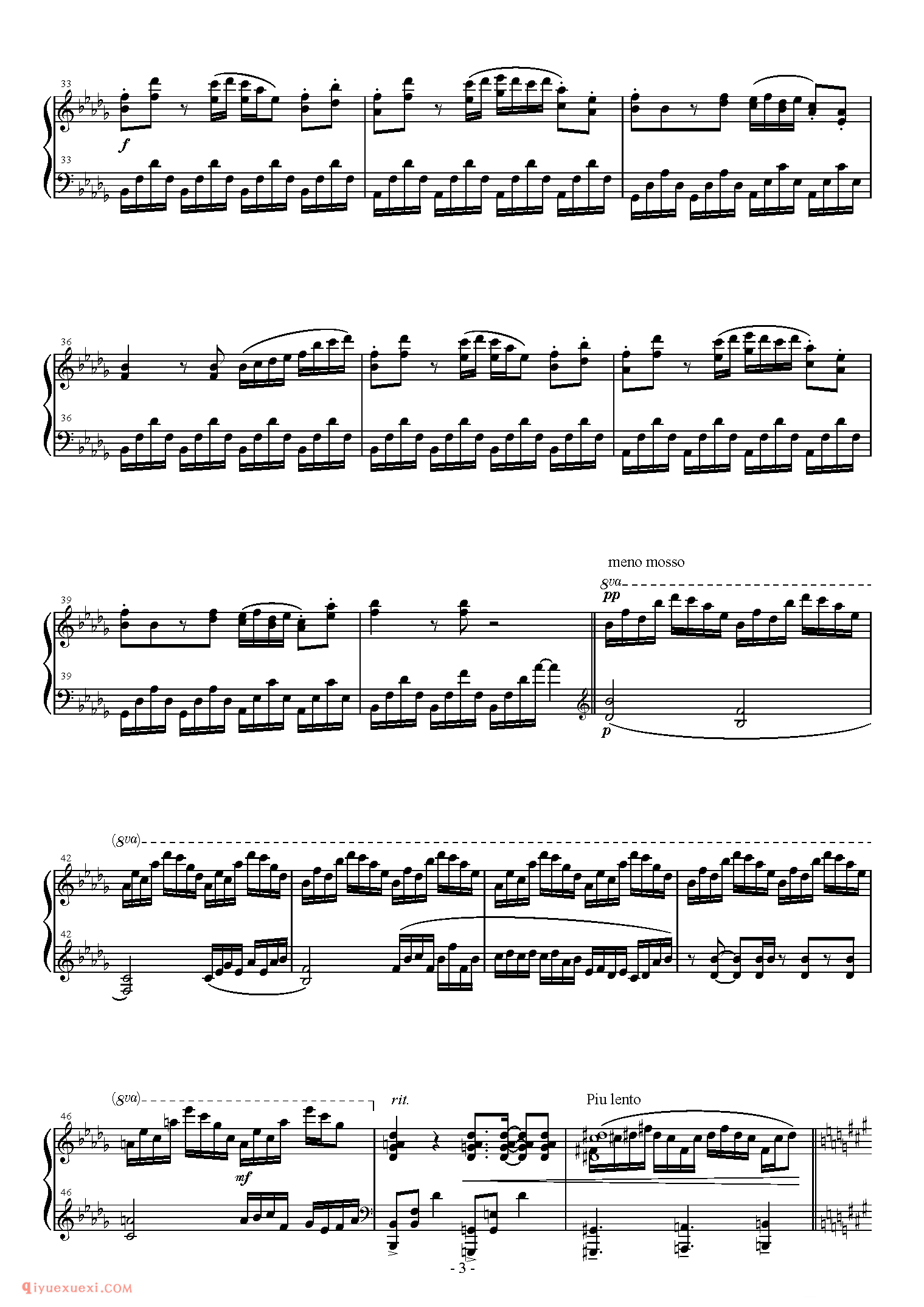 技巧: 1.这首作品和前面第八条的训练内容是一样的,都是音阶型的跑动练习,所不同的是这条练习曲以左手训练为主,左手需要注意的技巧要点和右手一样,仍然是换指动作的准确性。(具...