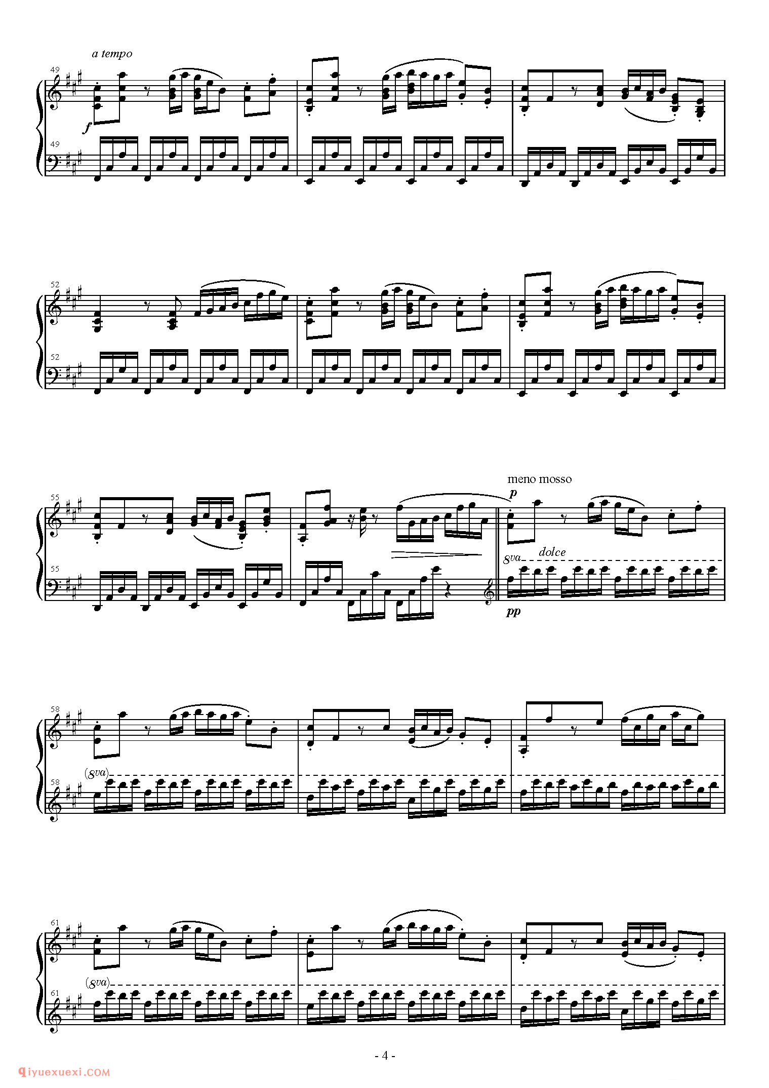 这首乐曲的左手弹奏时,小指既要站稳、保持,大指和三指又可略带轻微地带动手掌的翻动动作, 值得注意的是,19世纪的装饰音往往是在强拍之前弹奏的。因此第11小节的装饰音可从前一小节...