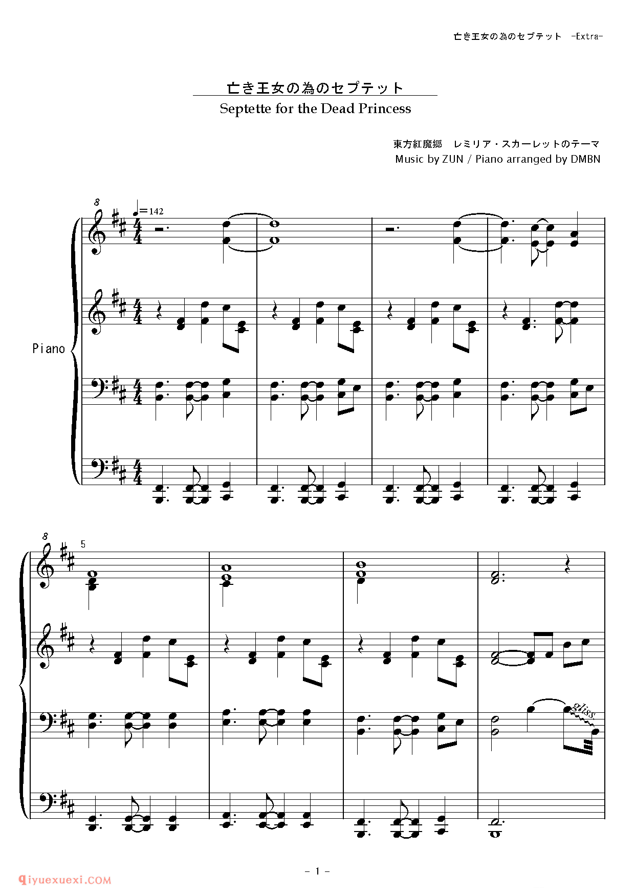 [東方ピアノEasyモード][lunatic][12]ver extra_亡き王女の為のセプテット_东方(project)钢琴谱高清电子版乐谱歌词图片是器乐学习网于2021年12月06日 10:44:40更新分享的钢琴曲谱;资源收录于钢琴曲谱栏目中;器乐学习网免费分享[東方ピアノEasyモード][lunatic][12]ver extra_亡き王女の為のセプテット_东方(project)钢琴谱简谱与五线谱歌谱图片,欢迎在线免费下载;器乐学习网无需注册会员,直接免费下载各类乐器学习资源及乐谱。