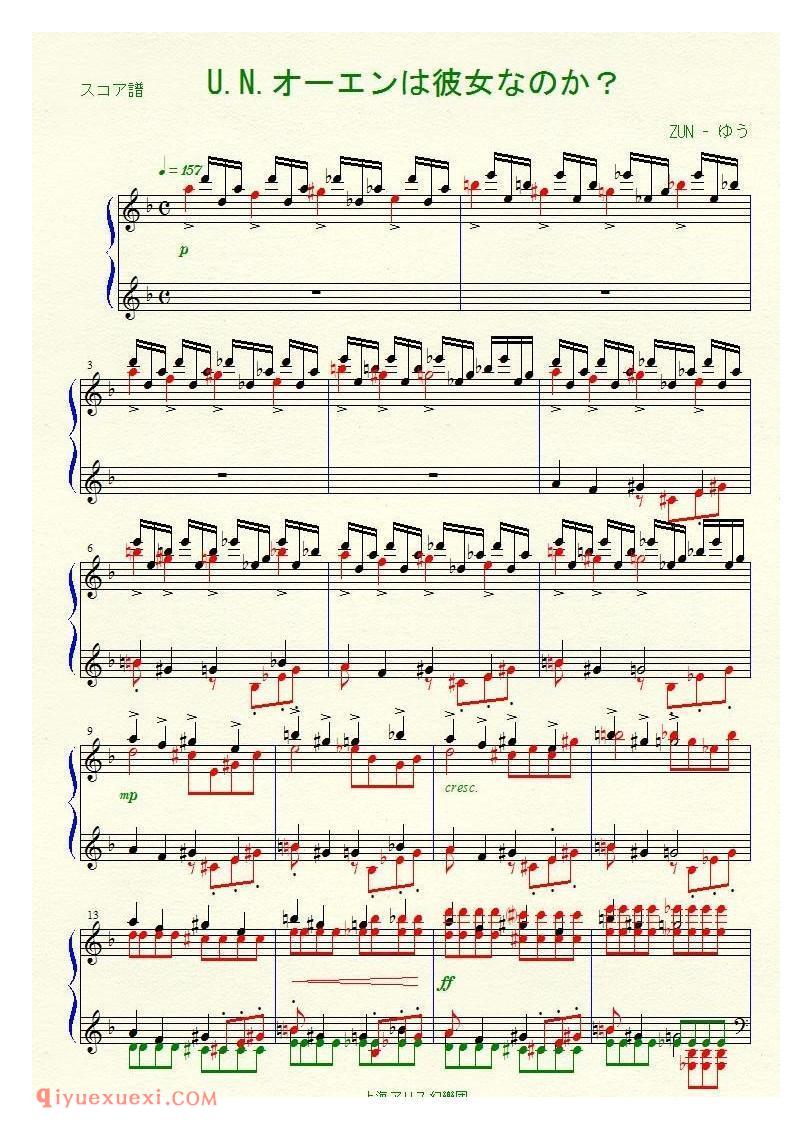 Arranged by ゆう 東方夢神楽サイズ_U.N.オーエンは彼女なのか?_东方(project)钢琴谱高清电子版乐谱歌词图片是器乐学习网于2021年12月06日 17:23:33更新分享的钢琴曲谱;资源收录于钢琴曲谱栏目中;器乐学习网免费分享Arranged by ゆう 東方夢神楽サイズ_U.N.オーエンは彼女なのか?_东方(project)钢琴谱简谱与五线谱歌谱图片,欢迎在线免费下载;器乐学习网无需注册会员,直接免费下载各类乐器学习资源及乐谱。