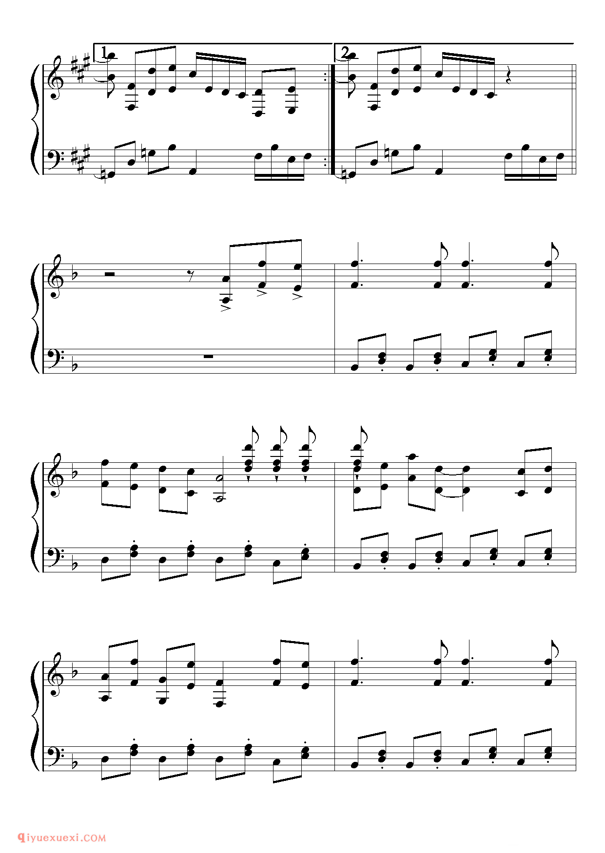 这首乐曲的左手弹奏时,小指既要站稳、保持,大指和三指又可略带轻微地带动手掌的翻动动作, 值得注意的是,19世纪的装饰音往往是在强拍之前弹奏的。因此第11小节的装饰音可从前一小节...