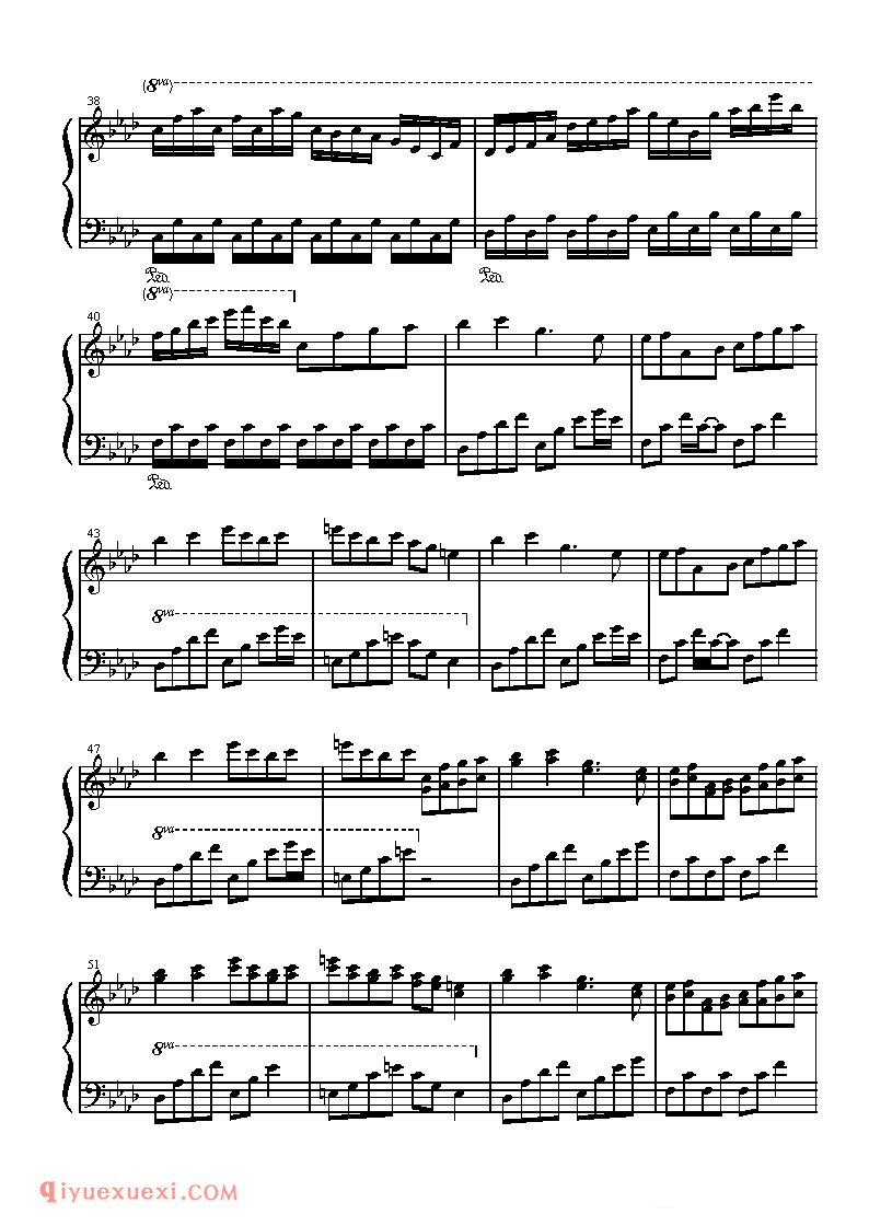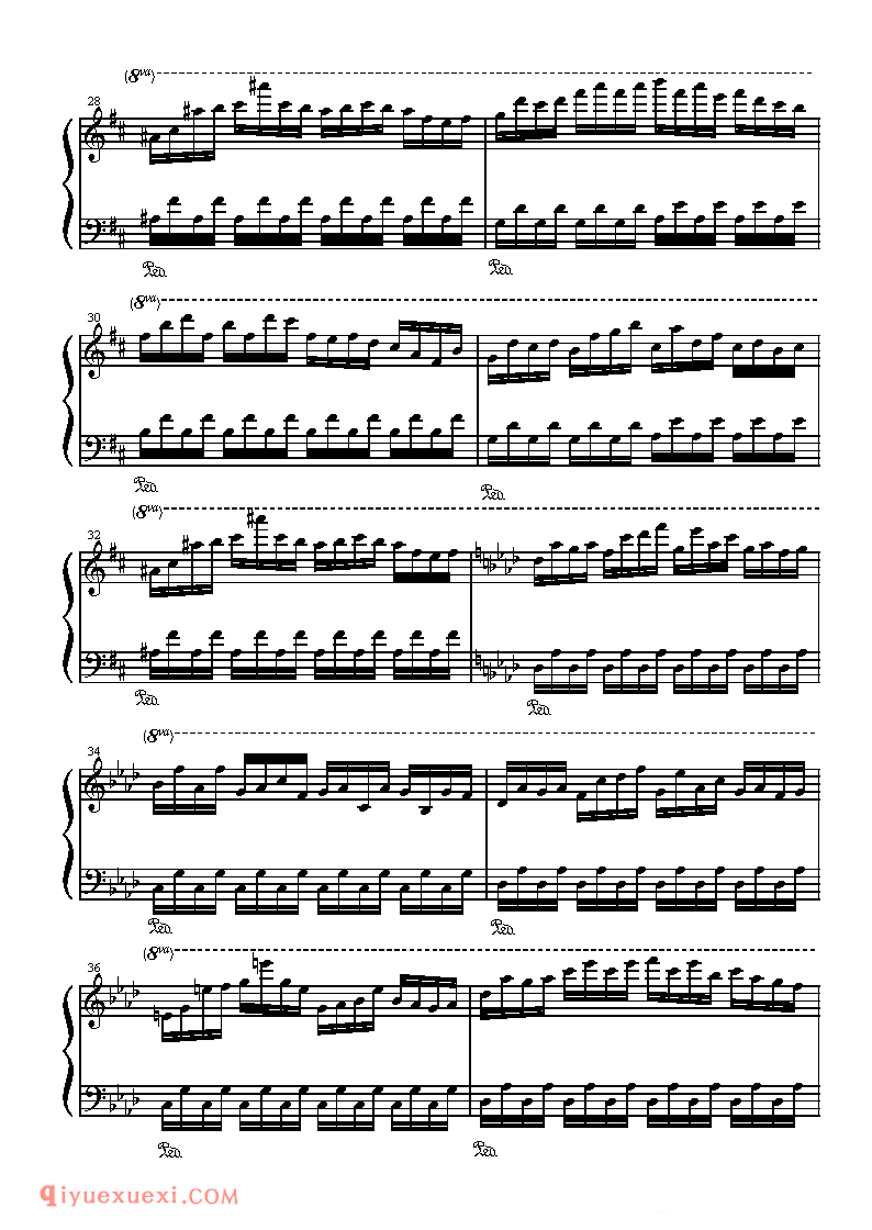 技巧: 1.这首作品和前面第八条的训练内容是一样的,都是音阶型的跑动练习,所不同的是这条练习曲以左手训练为主,左手需要注意的技巧要点和右手一样,仍然是换指动作的准确性。(具...