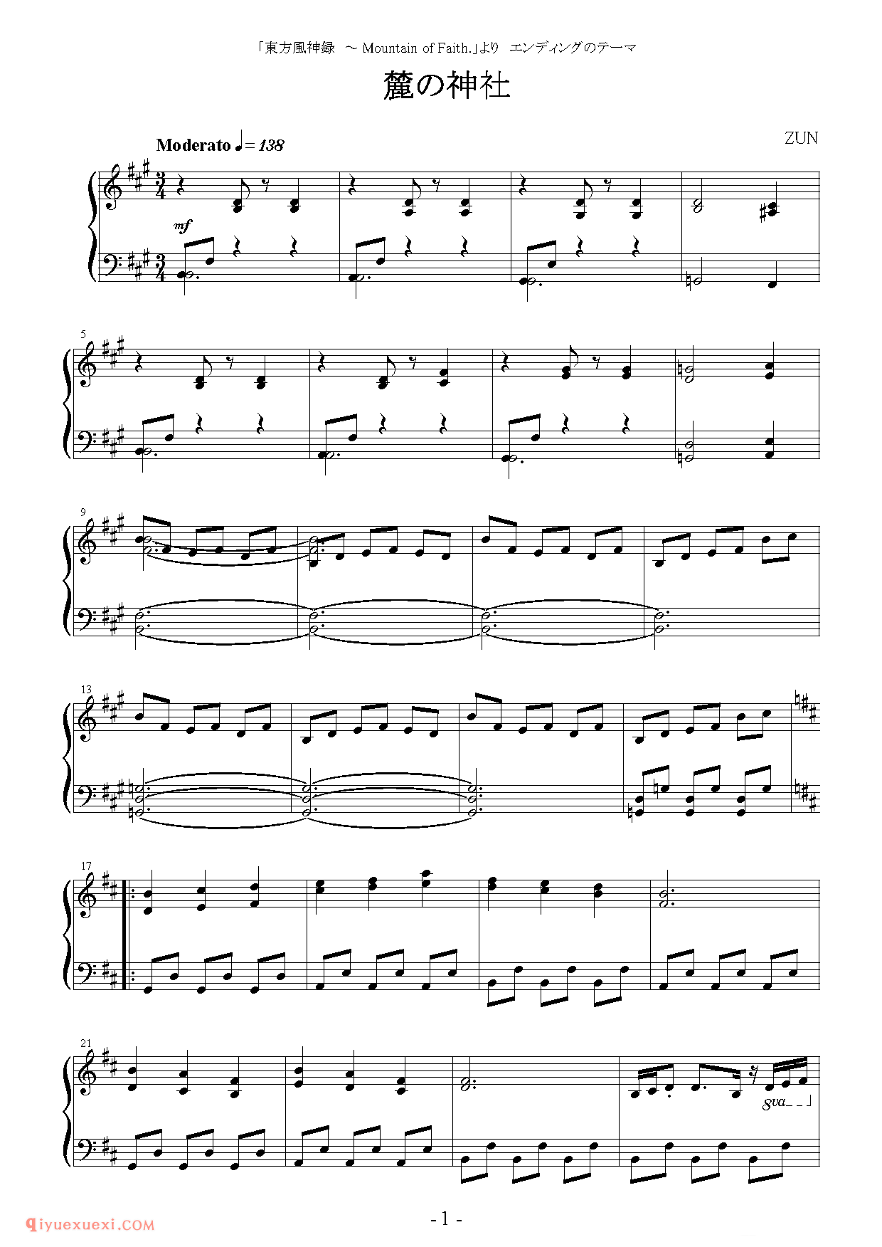 [东方幻音奏][hard][2]_麓の神社_東方風神録高清电子版乐谱歌词图片是器乐学习网于2021年12月07日 23:53:19更新分享的钢琴曲谱;资源收录于钢琴曲谱栏目中;器乐学习网免费分享[东方幻音奏][hard][2]_麓の神社_東方風神録简谱与五线谱歌谱图片,欢迎在线免费下载;器乐学习网无需注册会员,直接免费下载各类乐器学习资源及乐谱。
