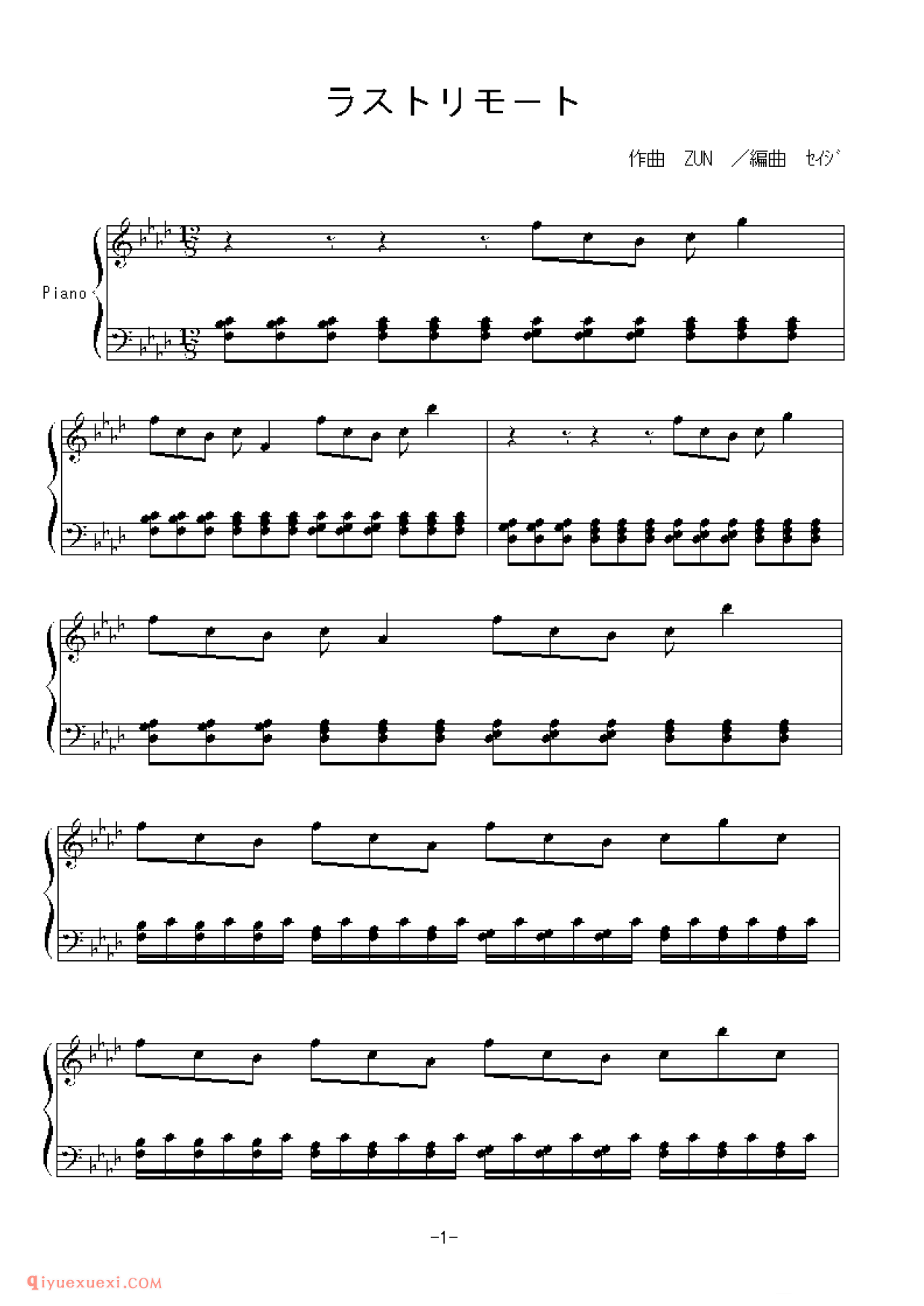 [nico][lunatic][11]_ラストリモート_東方地霊殿高清电子版乐谱歌词图片是器乐学习网于2021年12月08日 10:03:00更新分享的钢琴曲谱;资源收录于钢琴曲谱栏目中;器乐学习网免费分享[nico][lunatic][11]_ラストリモート_東方地霊殿简谱与五线谱歌谱图片,欢迎在线免费下载;器乐学习网无需注册会员,直接免费下载各类乐器学习资源及乐谱。