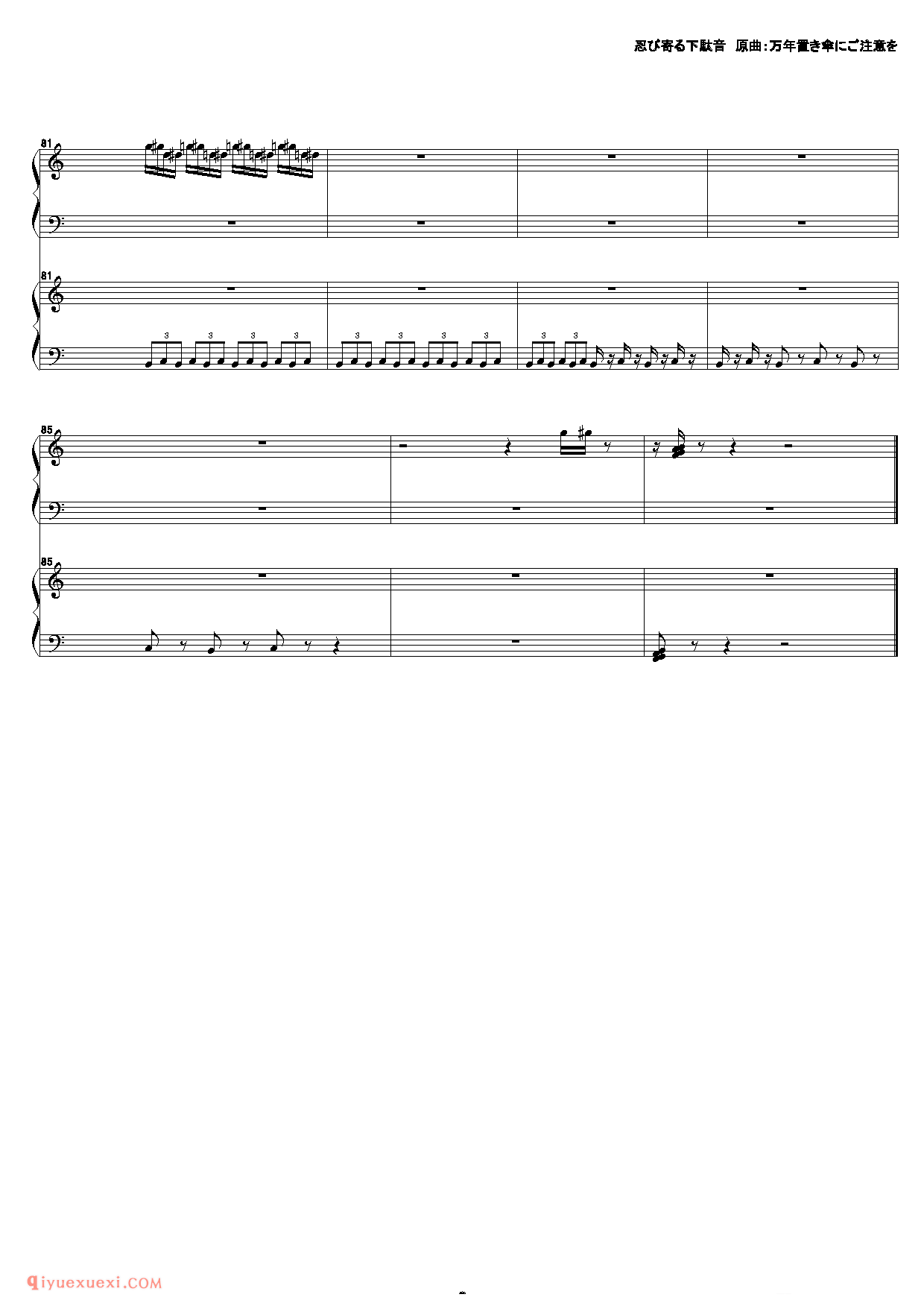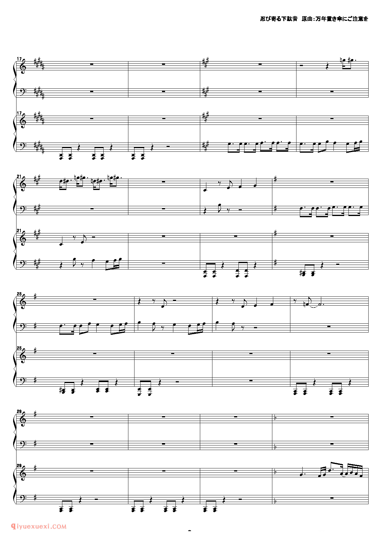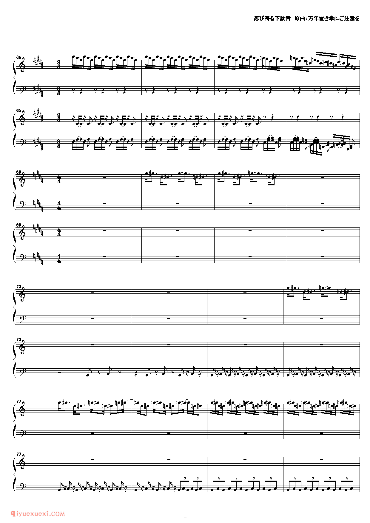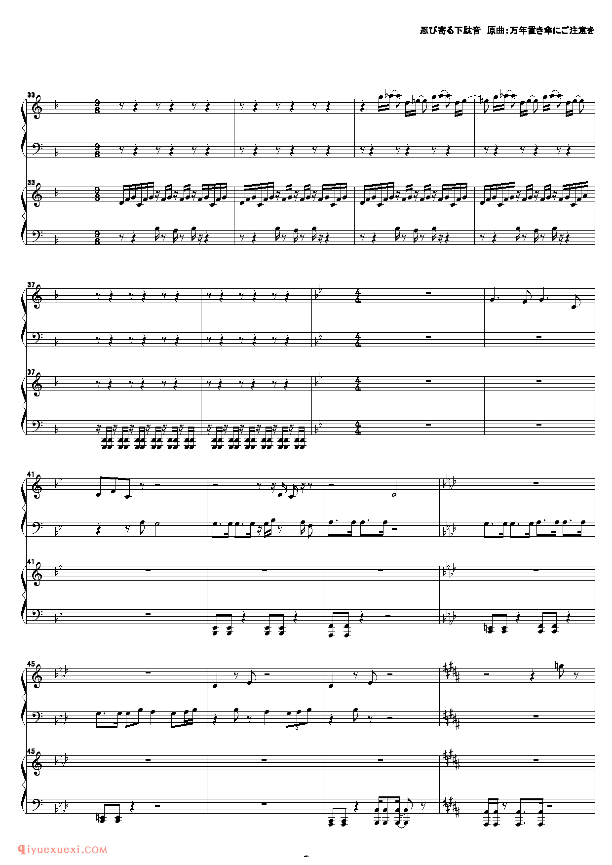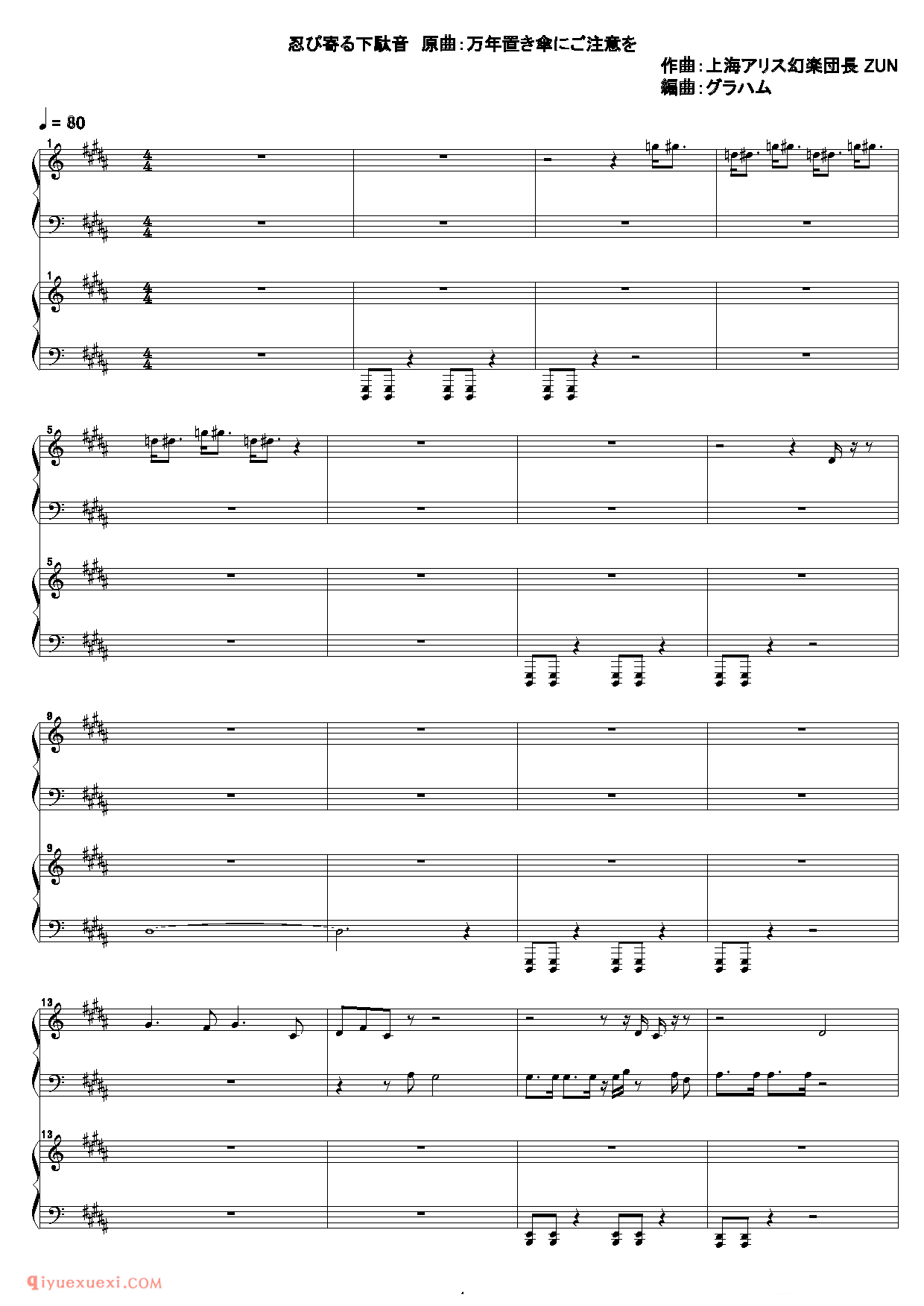 [グラハム][normal][6]忍び寄る下駄音_万年置き傘にご注意を_東方地霊殿高清电子版乐谱歌词图片是器乐学习网于2021年12月08日 10:49:53更新分享的钢琴曲谱;资源收录于钢琴曲谱栏目中;器乐学习网免费分享[グラハム][normal][6]忍び寄る下駄音_万年置き傘にご注意を_東方地霊殿简谱与五线谱歌谱图片,欢迎在线免费下载;器乐学习网无需注册会员,直接免费下载各类乐器学习资源及乐谱。
