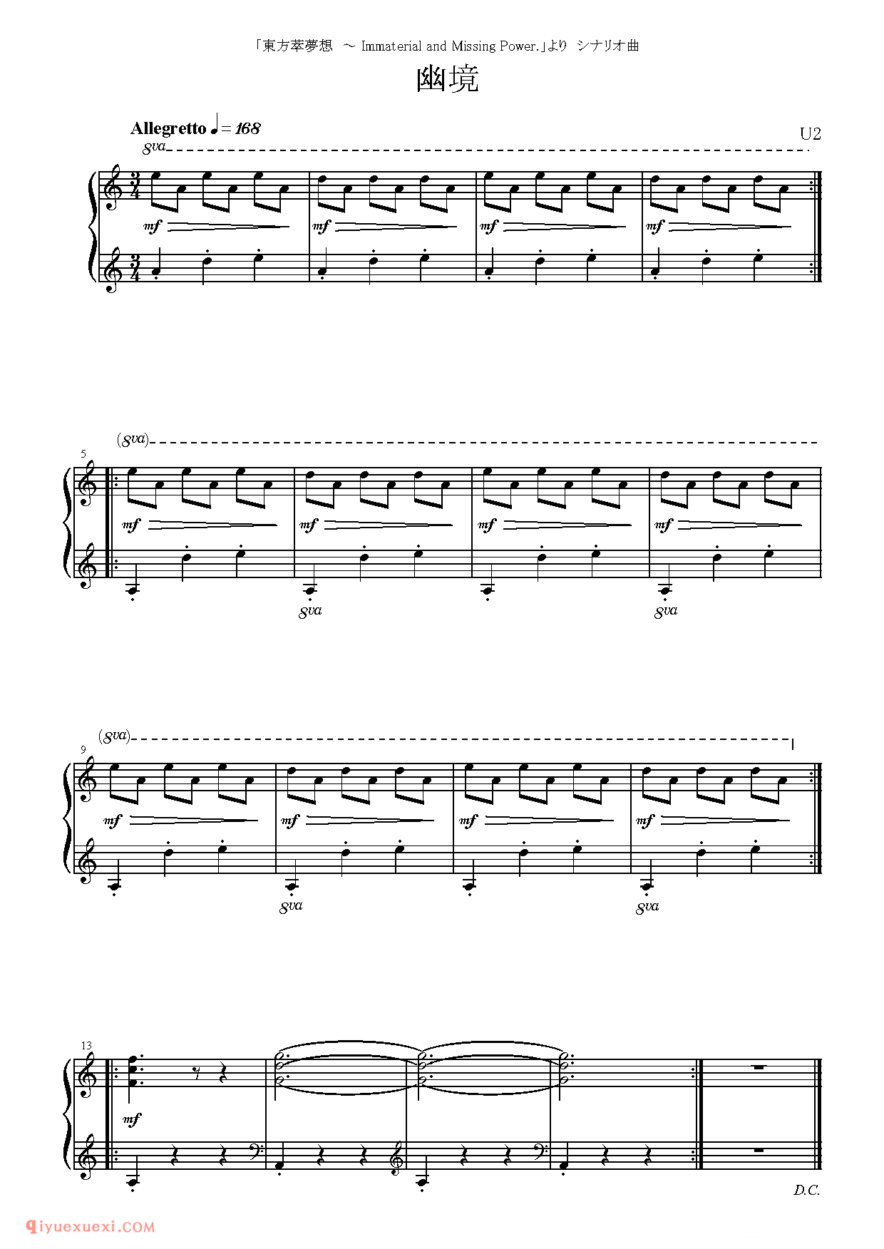 [东方幻音奏][easy][1]_幽境_東方萃夢想高清电子版乐谱歌词图片是器乐学习网于2021年12月08日 19:29:30更新分享的钢琴曲谱;资源收录于钢琴曲谱栏目中;器乐学习网免费分享[东方幻音奏][easy][1]_幽境_東方萃夢想简谱与五线谱歌谱图片,欢迎在线免费下载;器乐学习网无需注册会员,直接免费下载各类乐器学习资源及乐谱。