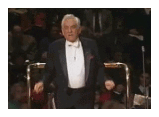说到起舞,肯定不能忘了美国指挥伯恩斯坦,他在作曲上也有很高的成就。看到穿白礼服那张,让我先哈哈一会儿...