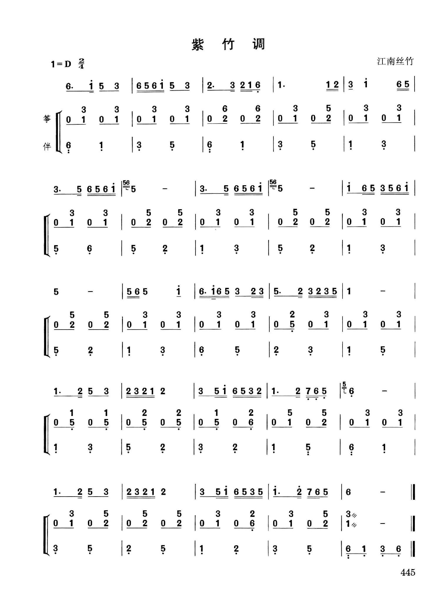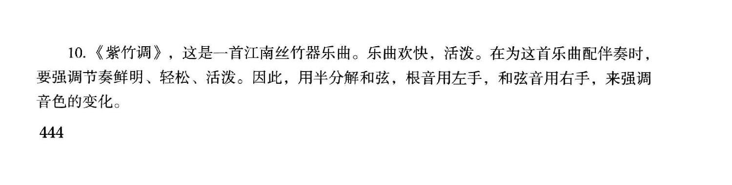 《紫竹调》,这是一首江南丝竹器乐曲。乐曲欢快,活泼。在为这首乐曲配伴奏时,要强调节奏鲜明、轻松、活泼。因此,用半分解和弦,根音用左手,和弦音用右手,来强调音色的变化。