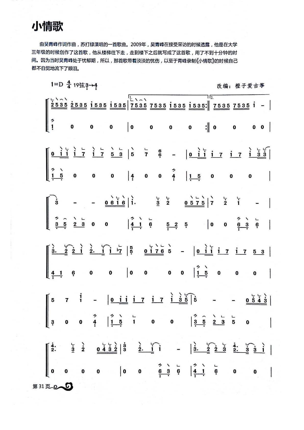 好听古筝乐曲《小情歌》简谱高清电子版乐谱歌词图片是器乐学习网于2023年05月04日 11:01:47更新分享的古筝曲谱;资源收录于古筝曲谱栏目中;器乐学习网免费分享好听古筝乐曲《小情歌》简谱简谱与五线谱歌谱图片,欢迎在线免费下载;器乐学习网无需注册会员,直接免费下载各类乐器学习资源及乐谱。