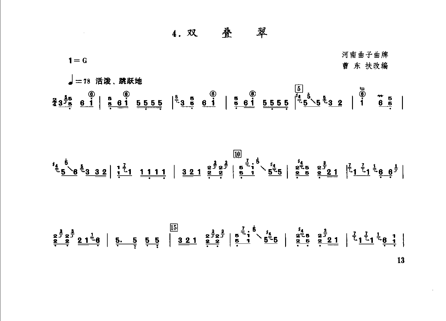曹东扶创编曲《双叠翠》河南筝派代表人物及曲谱高清电子版乐谱歌词图片是器乐学习网于2023年05月06日 09:51:15更新分享的古筝曲谱;资源收录于古筝曲谱栏目中;器乐学习网免费分享曹东扶创编曲《双叠翠》河南筝派代表人物及曲谱简谱与五线谱歌谱图片,欢迎在线免费下载;器乐学习网无需注册会员,直接免费下载各类乐器学习资源及乐谱。