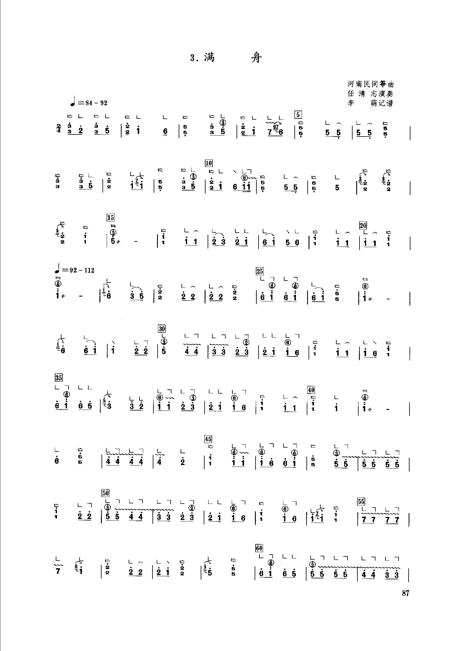 任清志《满舟》河南筝派代表曲谱高清电子版乐谱歌词图片是器乐学习网于2023年05月09日 10:46:19更新分享的古筝曲谱;资源收录于古筝曲谱栏目中;器乐学习网免费分享任清志《满舟》河南筝派代表曲谱简谱与五线谱歌谱图片,欢迎在线免费下载;器乐学习网无需注册会员,直接免费下载各类乐器学习资源及乐谱。