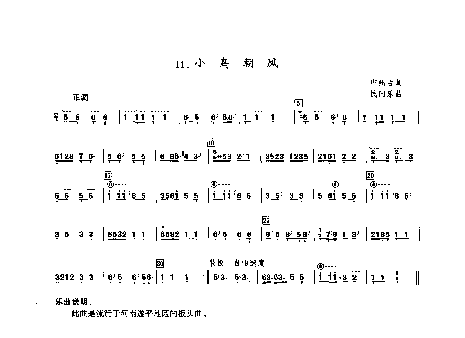 乐曲说明:此曲是流行于河南遂平地区的板头曲。