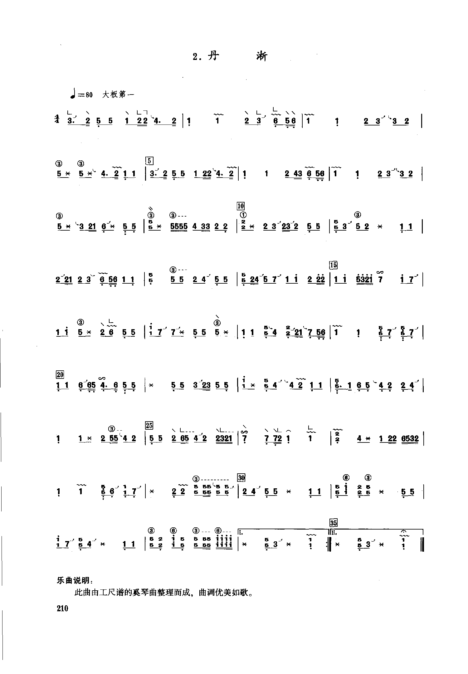 古筝简谱 | 丹淅(山东筝古曲)大板曲,乐曲说明:此曲由工尺谐的奚琴曲整理而成,曲调优美如歌。