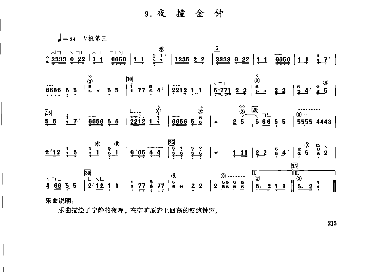古筝简谱 | 夜撞金钟(山东筝古曲)大板曲,乐曲说明:乐曲描绘了宁静的夜晚,在空旷原野上回荡的悠悠钟声。