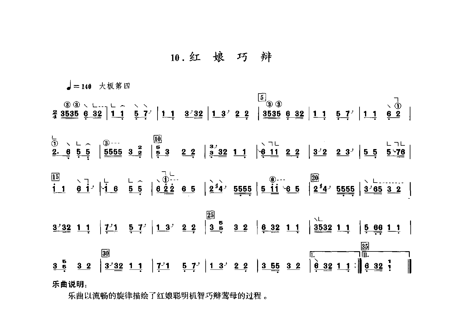 乐曲以流畅的旋律描绘了红娘聪明机智巧辩莺母的过程。