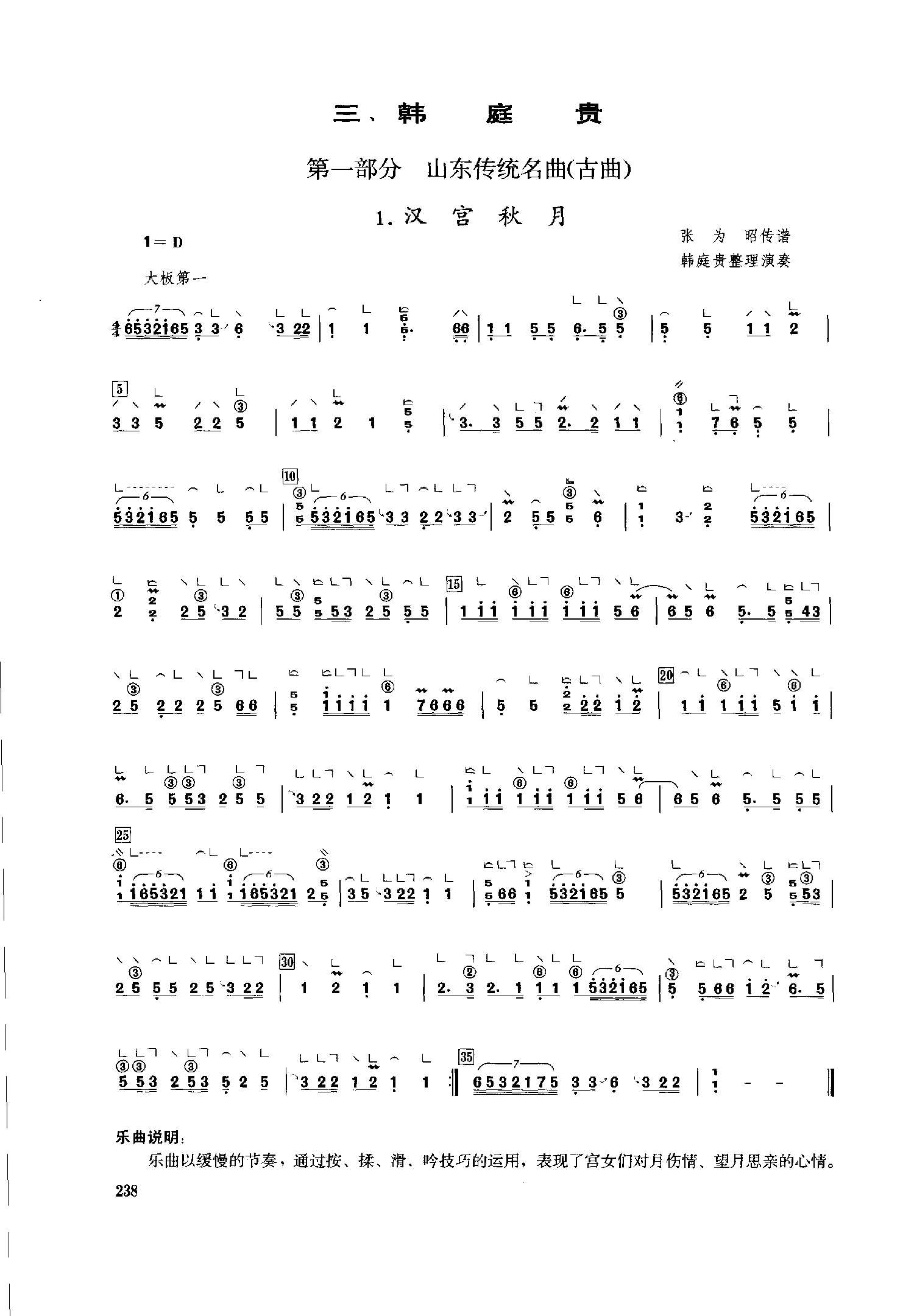 古曲[汉宫秋月]韩庭贵 | 山东传统古筝名曲谱高清电子版乐谱歌词图片是器乐学习网于2023年05月16日 12:23:12更新分享的古筝曲谱;资源收录于古筝曲谱栏目中;器乐学习网免费分享古曲[汉宫秋月]韩庭贵 | 山东传统古筝名曲谱简谱与五线谱歌谱图片,欢迎在线免费下载;器乐学习网无需注册会员,直接免费下载各类乐器学习资源及乐谱。
