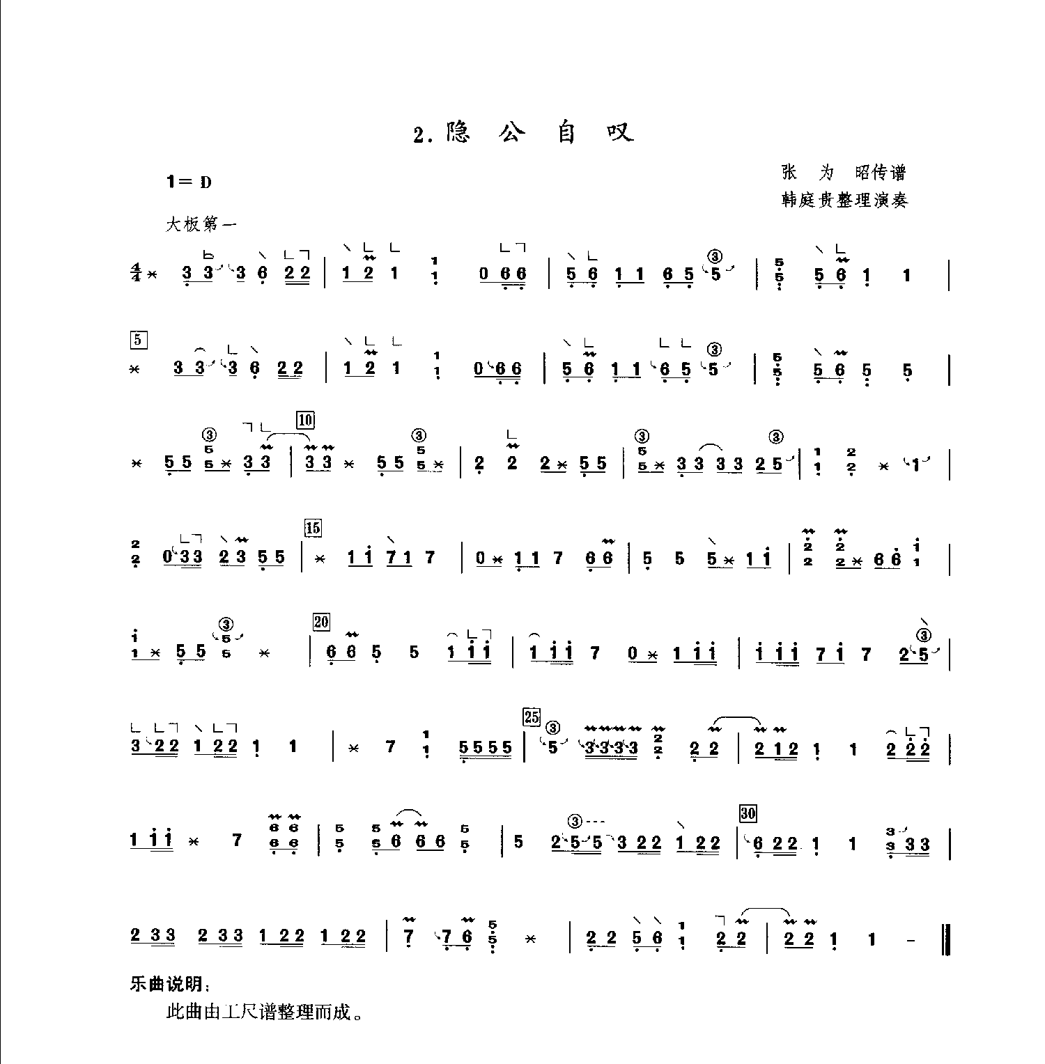 古曲[隐公自叹]韩庭贵 | 山东传统古筝名曲谱