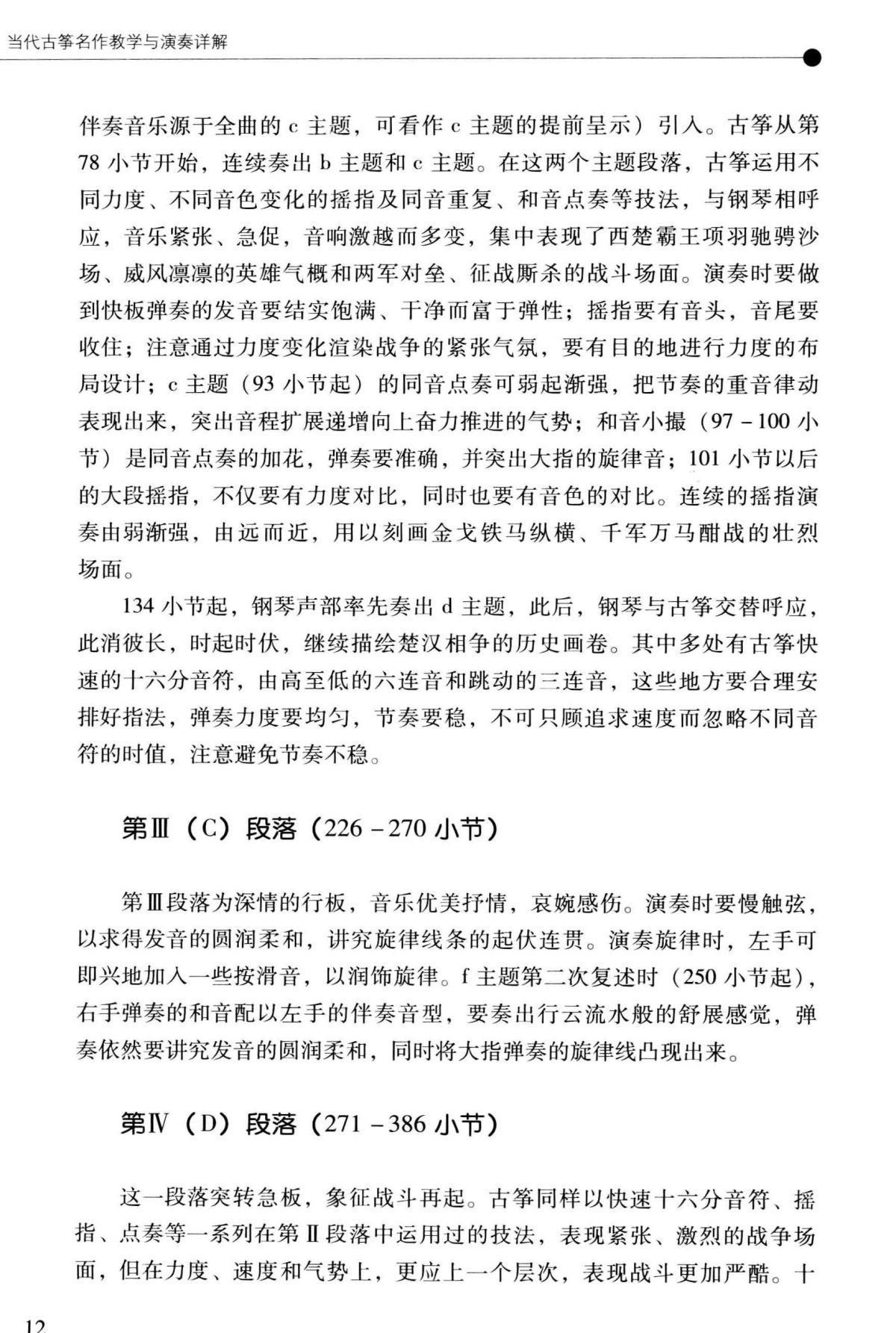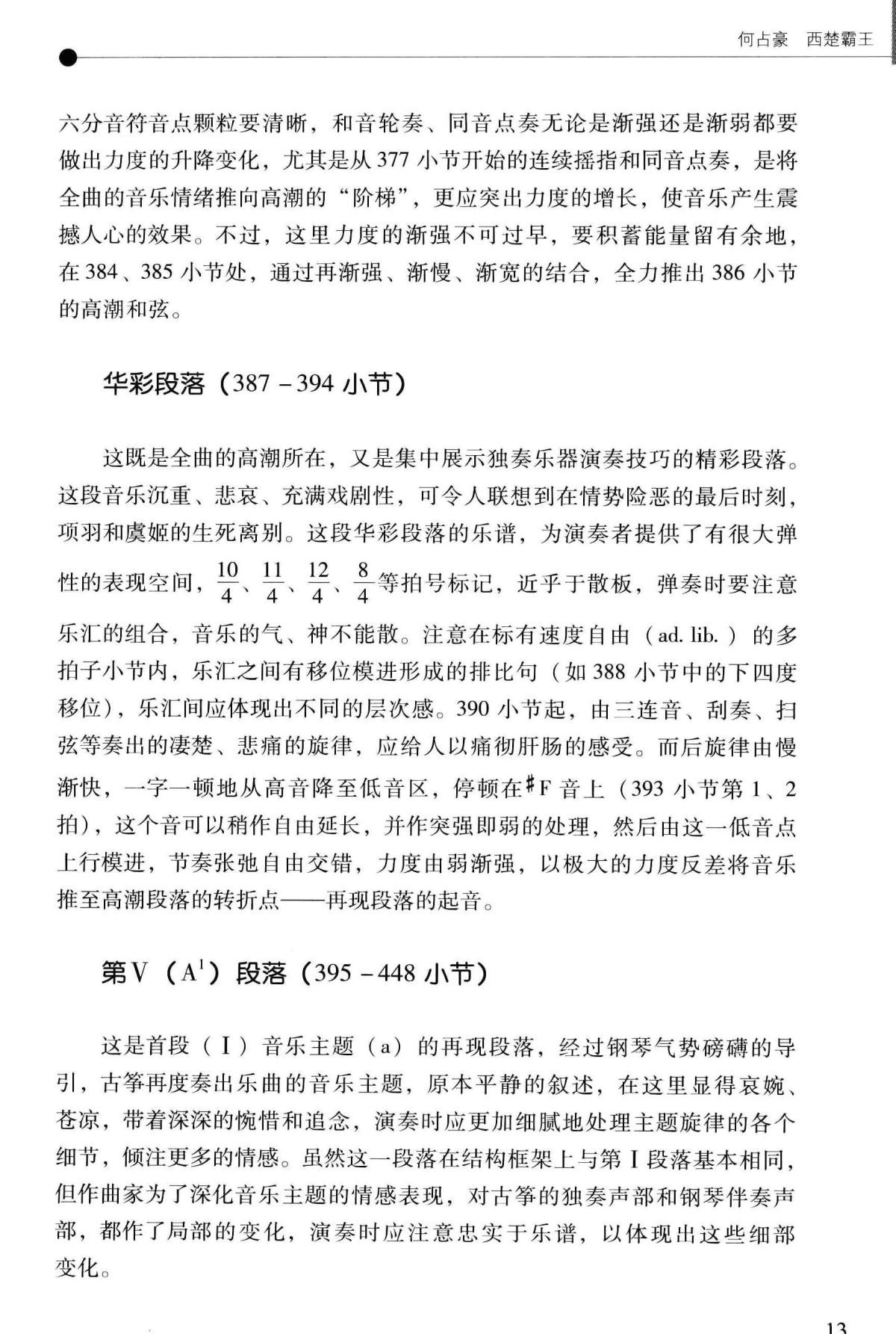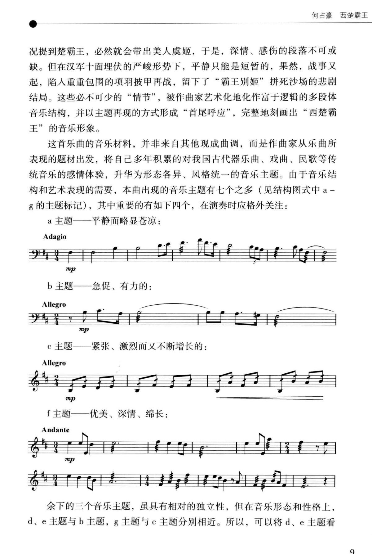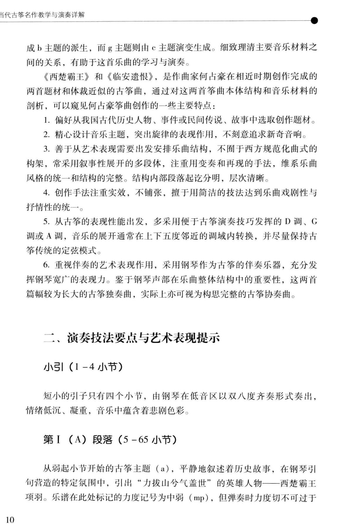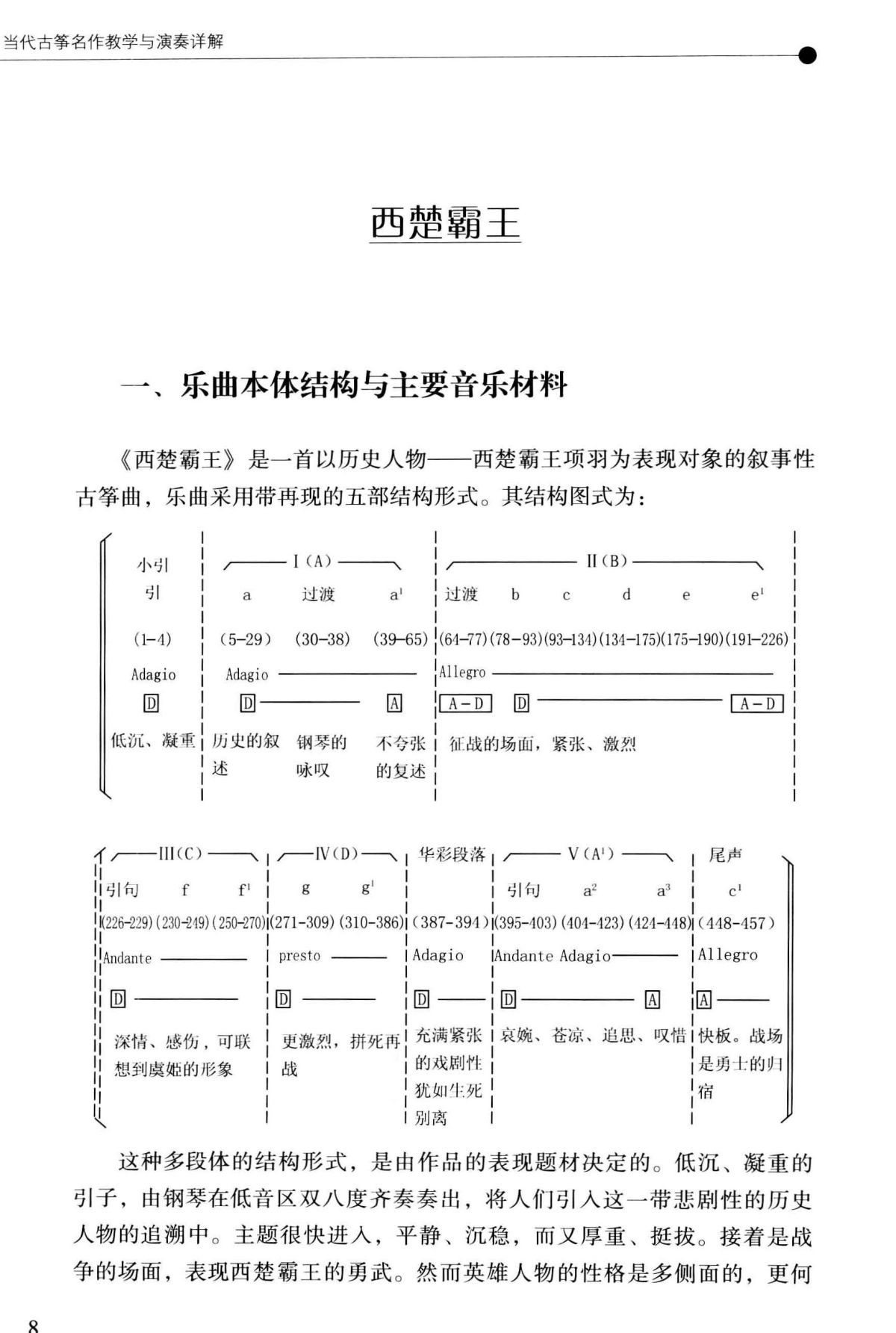 《西楚霸王》和《临安遗恨》,是作曲家何占豪在相近时期创作完成的两首题材和体裁近似的古筝曲,通过对这两首筝曲本体结构和音乐材料的剖析,可以窥见何占豪筝曲创作的一些主要特点: