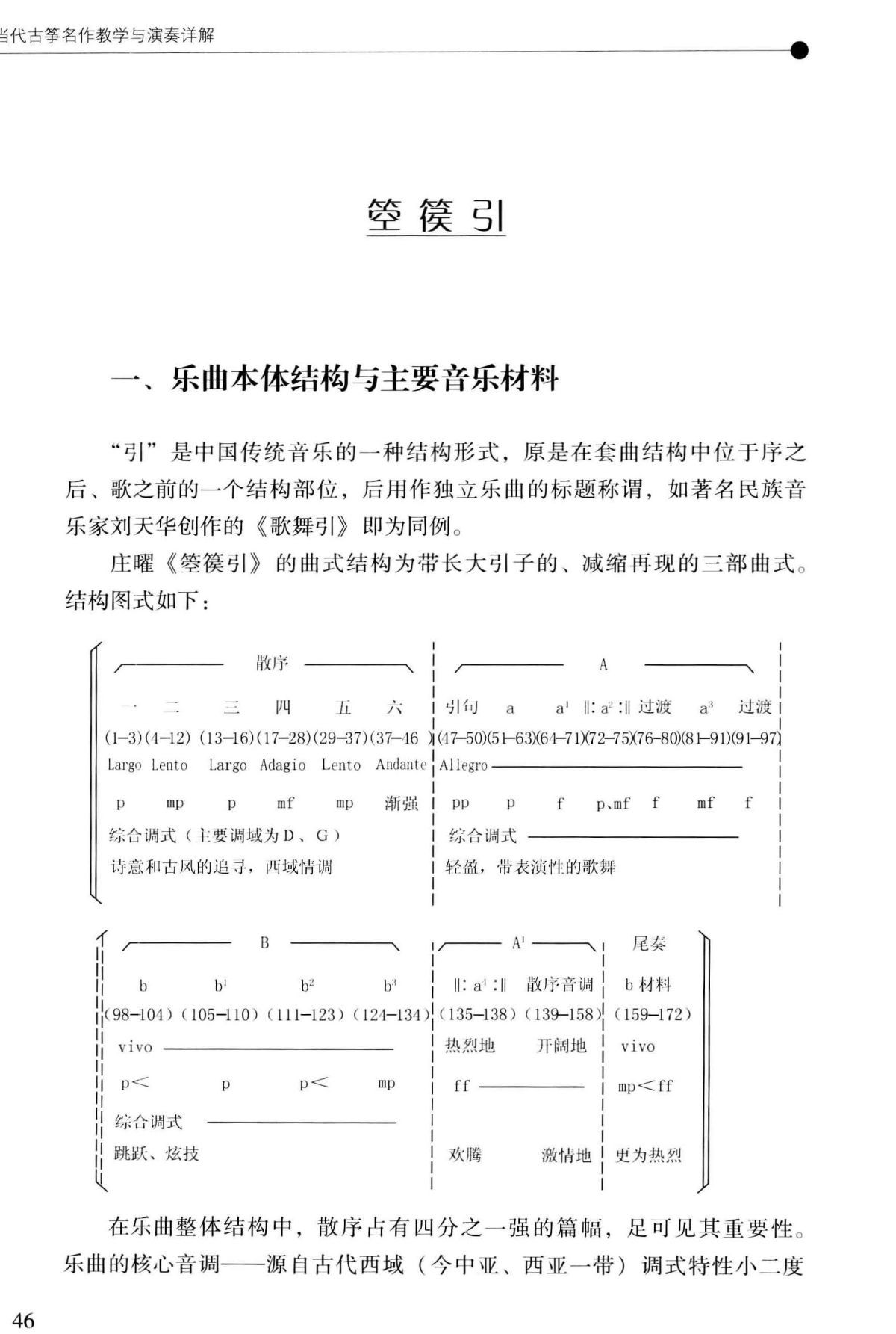 庄曜《竺筷引》的曲式结构为带长大引子的、减缩再现的三部曲式。结构图式如下: