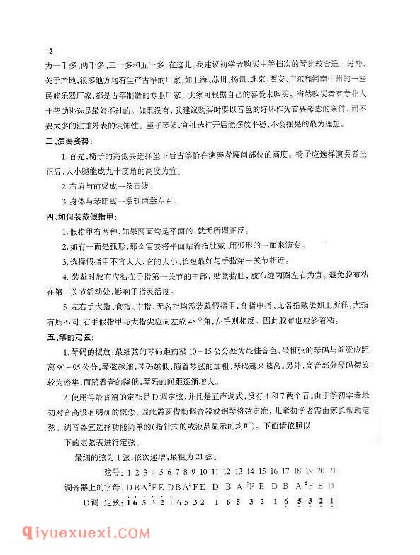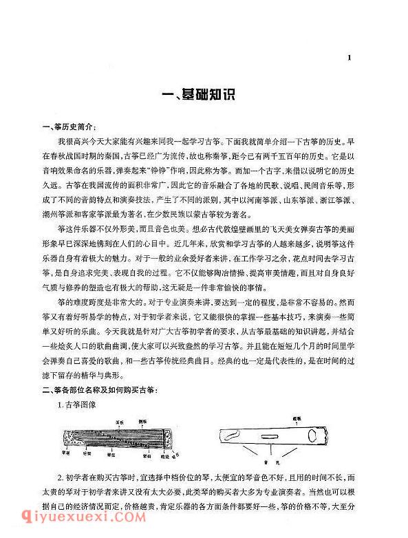 我很高兴今天大家能有兴趣来同我一起学习古筝。下面我就简单介绍一下古筝的历史。早在春秋战国时期的素国,古筝已经广为流传,故也称秦筝,距今已有两千五百年的历史。它是以音响效果命名的乐器,弹奏起来“铮铮"作响,因此称为筝。而加--个古字,来惜以说明它的历史久远。古筝在我国流传的面积非常广,因此它的音乐融合了各地的民歌、说唱,民间音乐等,形成了不同的音韵特点和演奏技法,产生了不同的派别,其中以河南筝派、山东筝派、浙江筝派、潮州筝派和客家筝派最为著名,在少数民族以蒙古筝较为著名。