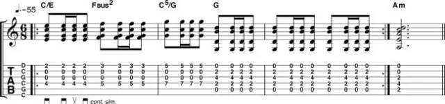 Csus2调弦法(CGCGCD),并没有Dsus4调弦法(DADGAD)有名,有凯尔特音乐的感觉。