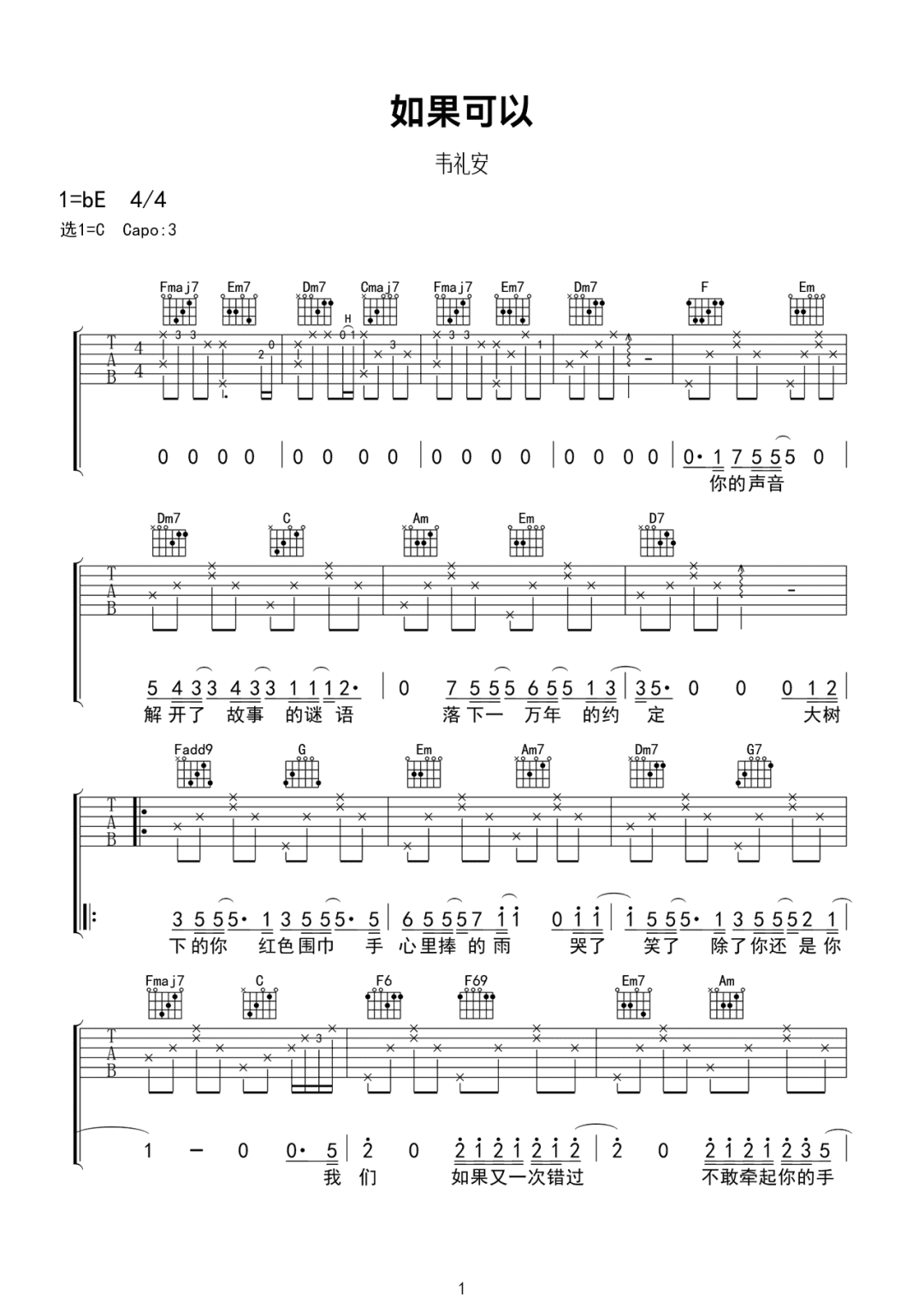 韦礼安《如果可以》吉他谱高清电子版乐谱歌词图片是器乐学习网于2024年05月21日 19:01:04更新分享的吉他曲谱;资源收录于吉他曲谱栏目中;器乐学习网免费分享韦礼安《如果可以》吉他谱简谱与五线谱歌谱图片,欢迎在线免费下载;器乐学习网无需注册会员,直接免费下载各类乐器学习资源及乐谱。