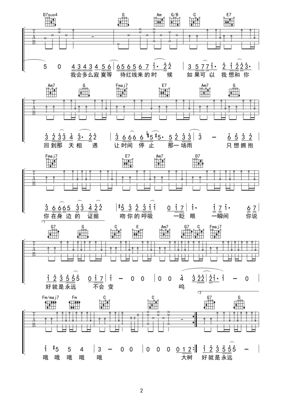 分享来自吉他专家编配的《刚刚好》吉他谱,C调弹唱六线谱,原调#C调,演奏变调夹夹第一品。有些地方和弦转换较快,需要多加练习。...