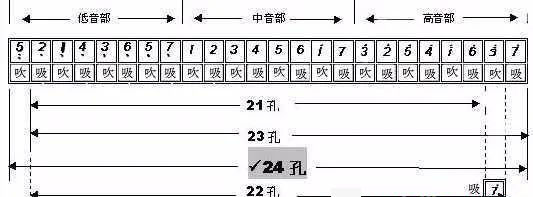 其中的135三个音(含低音和高音)是吹气的,2467是吸气的。