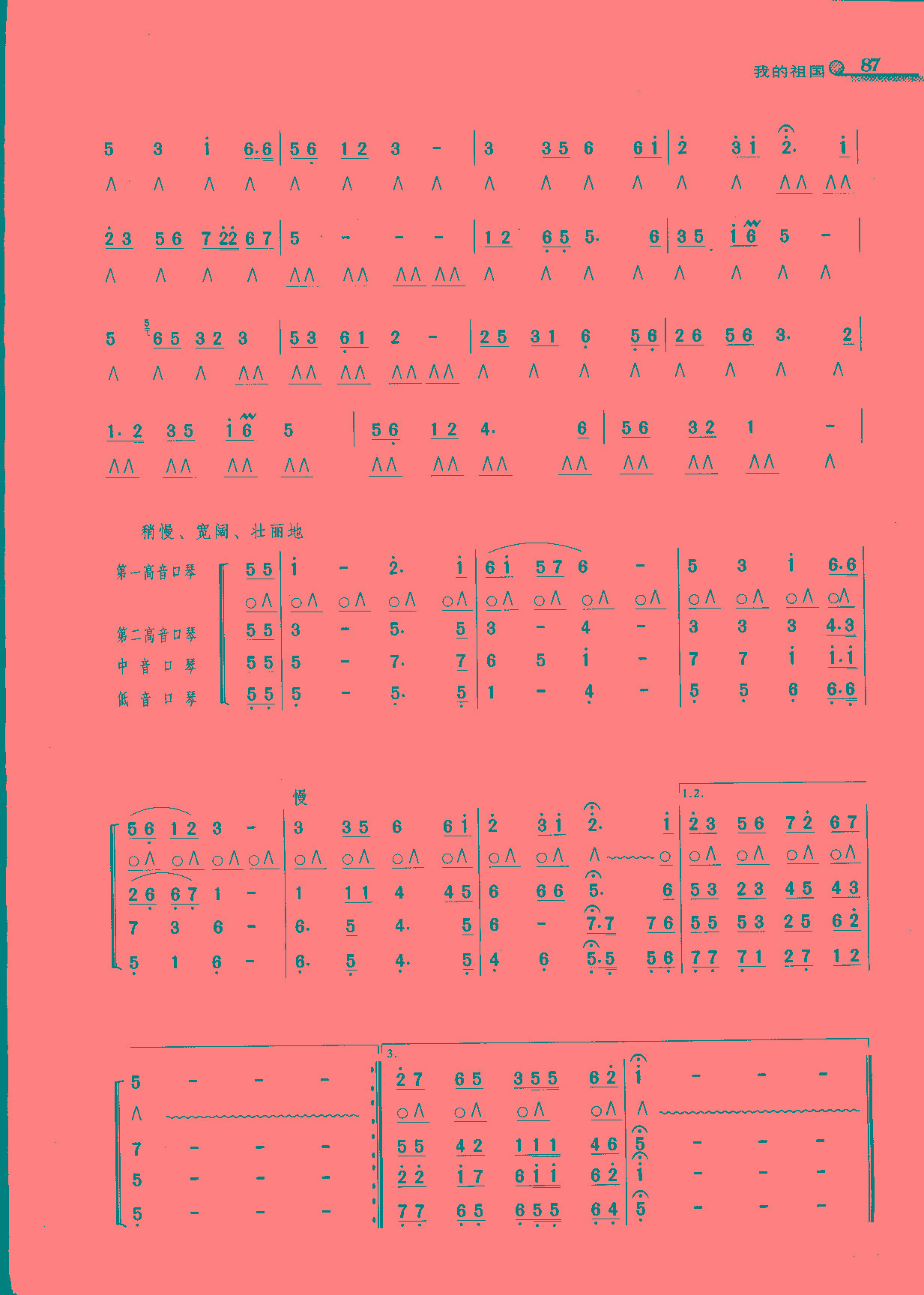口琴演奏曲精选[我的祖国(独奏与合奏)]附演奏提示 周张庆编高清电子版乐谱歌词图片是器乐学习网于2024年12月19日 09:34:11更新分享的口琴曲谱;资源收录于口琴曲谱栏目中;器乐学习网免费分享口琴演奏曲精选[我的祖国(独奏与合奏)]附演奏提示 周张庆编简谱与五线谱歌谱图片,欢迎在线免费下载;器乐学习网无需注册会员,直接免费下载各类乐器学习资源及乐谱。