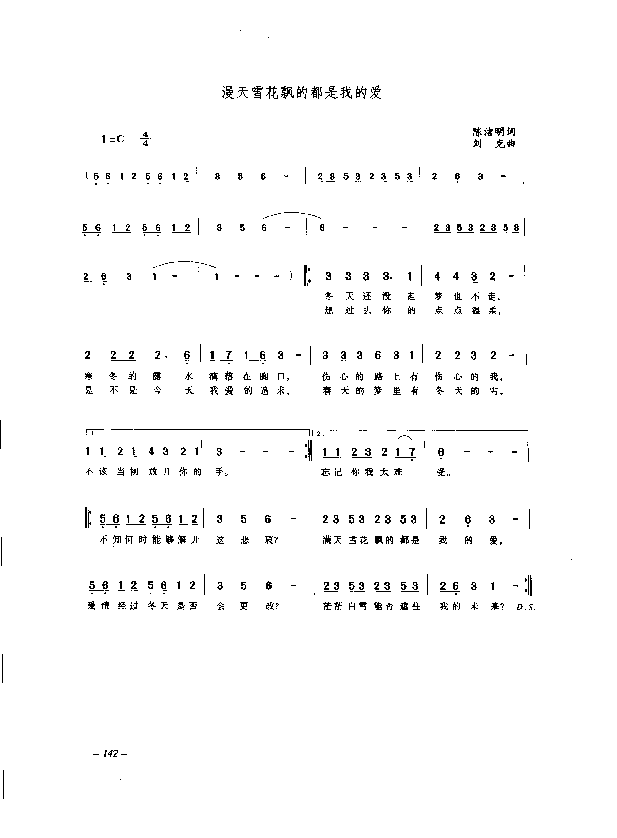 漫天雪花飘的都是我的爱 陈洁明词 刘克曲