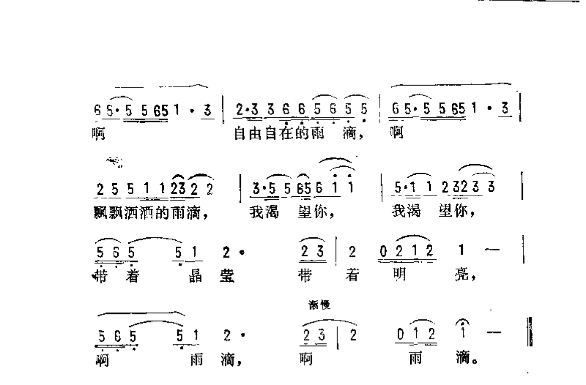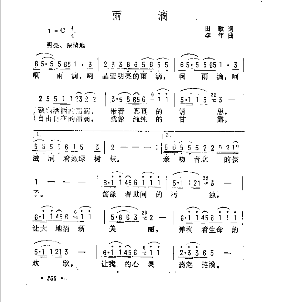 通俗歌曲简谱:雨滴 田歌词 李年曲