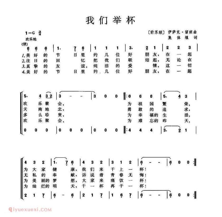 前苏联 | 我们举杯 二部合唱 | 简谱高清简谱歌词是器乐学习网于2021年06月13日 11:37:23更新分享的合唱歌谱;资源收录于合唱歌谱栏目中;器乐学习网免费分享前苏联 | 我们举杯 二部合唱 | 简谱简谱与五线谱歌谱图片,欢迎在线免费下载;器乐学习网无需注册会员,直接免费下载各类乐器学习资源及乐谱。