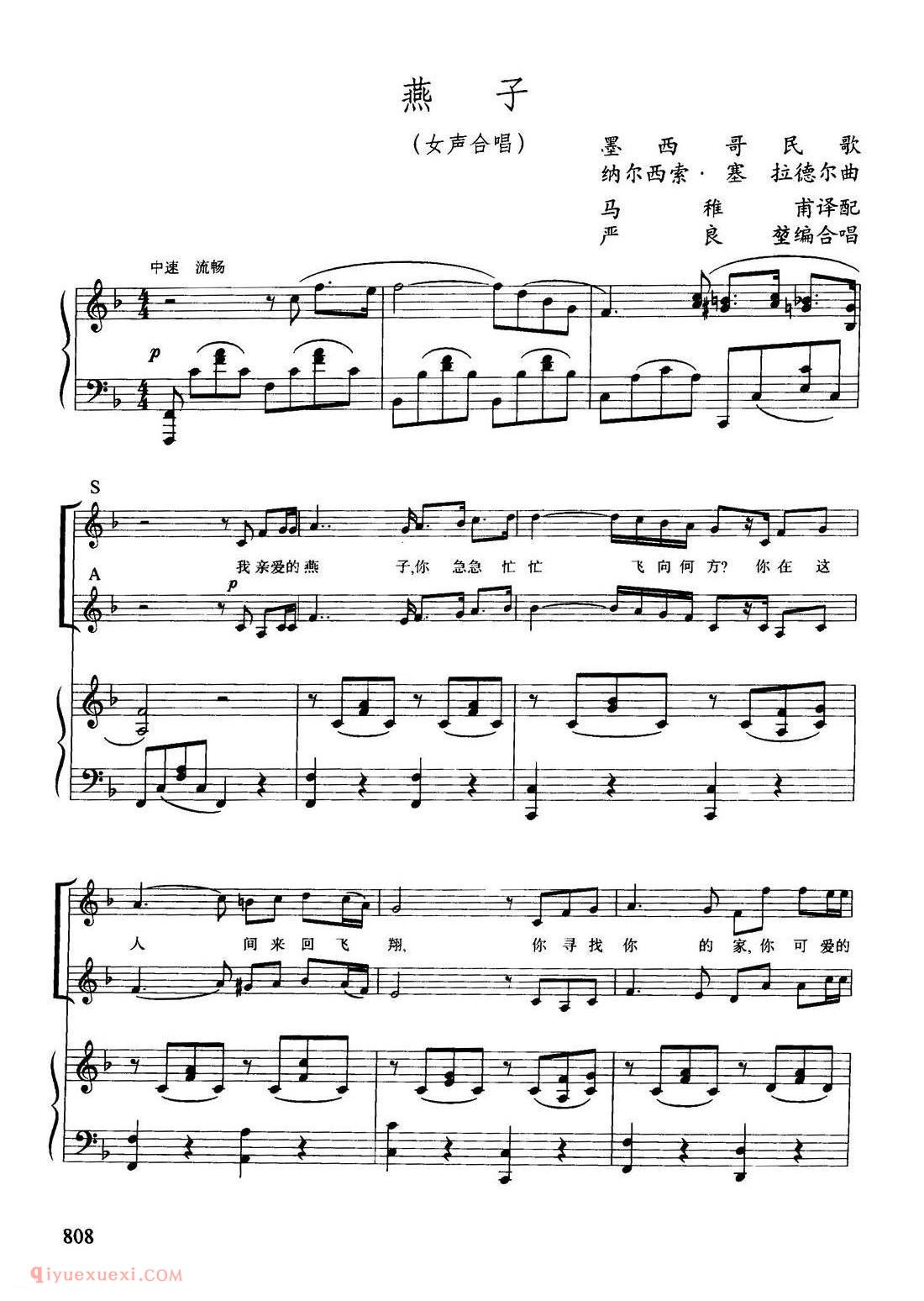 墨西哥 | 燕子 | 五线谱高清简谱歌词是器乐学习网于2021年07月07日 16:24:18更新分享的合唱歌谱;资源收录于合唱歌谱栏目中;器乐学习网免费分享墨西哥 | 燕子 | 五线谱简谱与五线谱歌谱图片,欢迎在线免费下载;器乐学习网无需注册会员,直接免费下载各类乐器学习资源及乐谱。