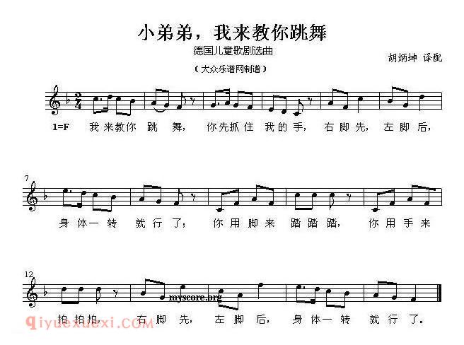 小弟弟,我来教你跳舞/德国儿童歌剧选曲 | 五线谱高清简谱歌词是器乐学习网于2021年07月15日 22:54:31更新分享的外国歌谱;资源收录于外国歌谱栏目中;器乐学习网免费分享小弟弟,我来教你跳舞/德国儿童歌剧选曲 | 五线谱简谱与五线谱歌谱图片,欢迎在线免费下载;器乐学习网无需注册会员,直接免费下载各类乐器学习资源及乐谱。