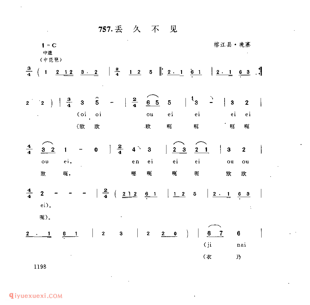 丢久不见 榕江县·晚寨_嘎贝巴_贵州民间歌曲简谱