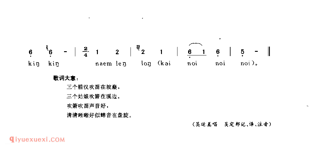三个腊汉吹笛在坡巅 黎平县·禅寨_儿歌_贵州民间歌曲简谱