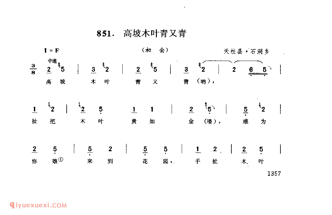 高坡木叶青又青(初会) 天柱县·石洞乡_阿外炎(玩山歌)_贵州民间歌曲简谱