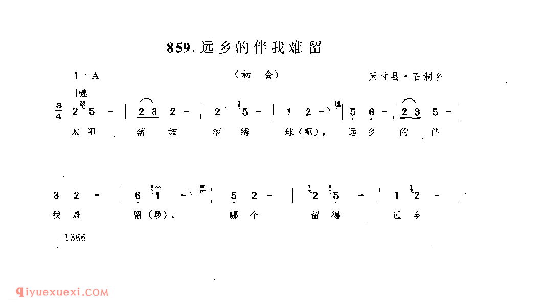 远乡的伴我难留(初会) 天柱县·石洞乡_阿外炎(玩山歌)_贵州民间歌曲简谱