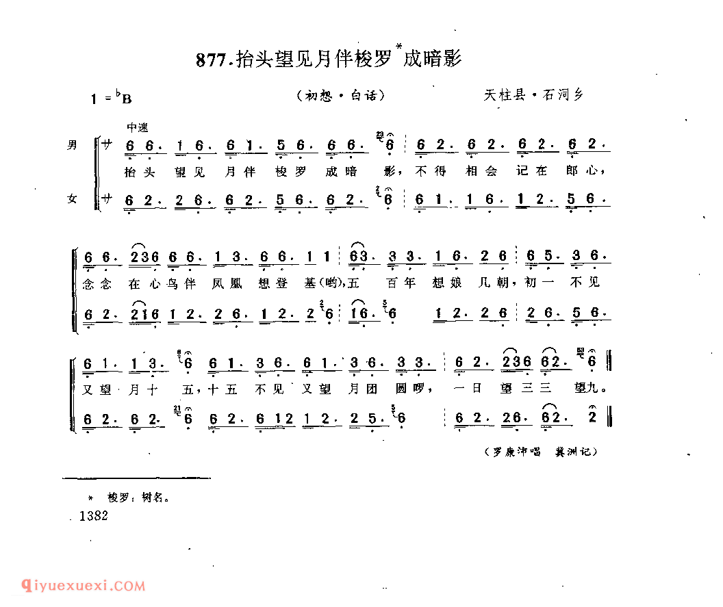 抬头望见月伴梭罗成暗影(初想·白话) 天柱县·石洞乡_阿外炎(玩山歌)_贵州民间歌曲简谱
