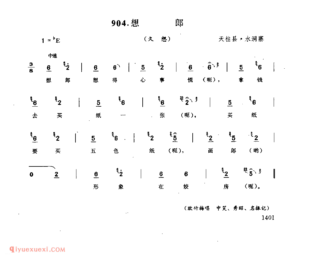 想郎(久想) 天柱县·水洞寨_阿外炎(玩山歌)_贵州民间歌曲简谱