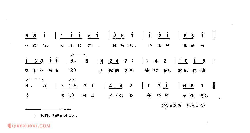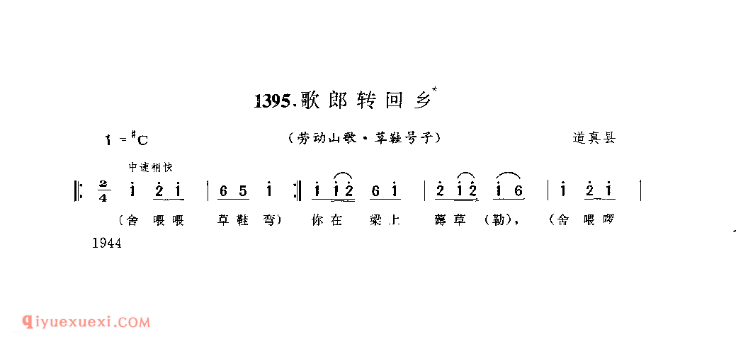 歌郎转回乡(劳动山歌·草鞋号子) 道真县_劳动山歌_贵州民间歌曲简谱
