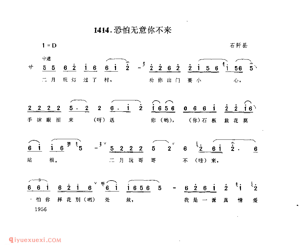 恐怕无意你不来 石阡县_勾朵以_贵州民间歌曲简谱